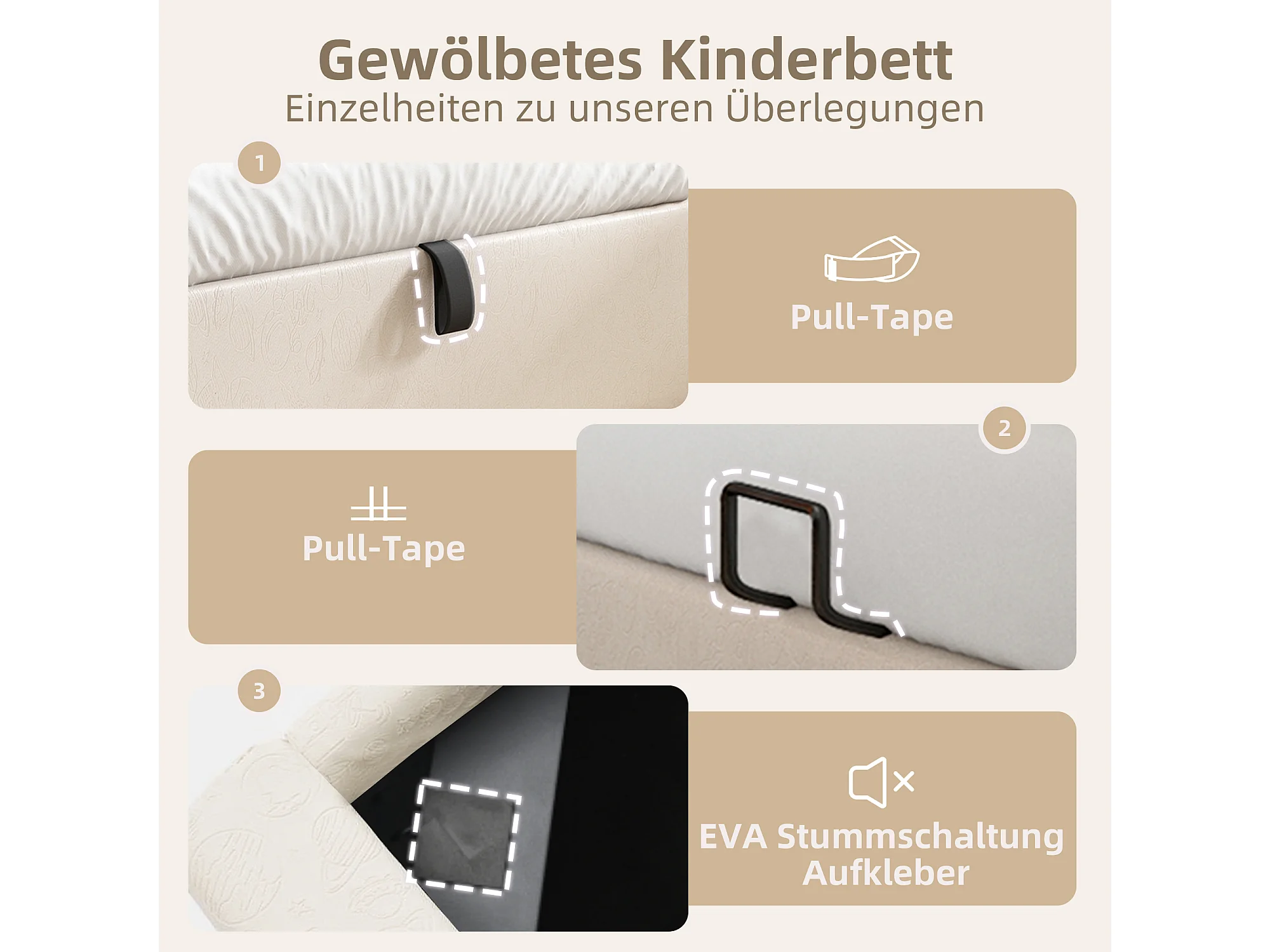 Lit coffre rembourré pour enfant - 90 x 200 cm - rangement hydraulique - PU - beige