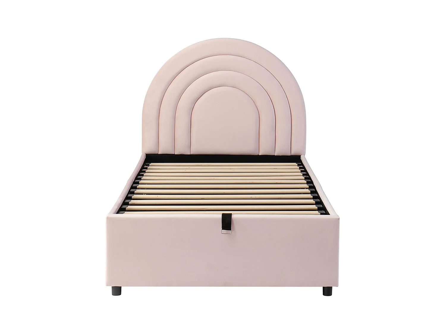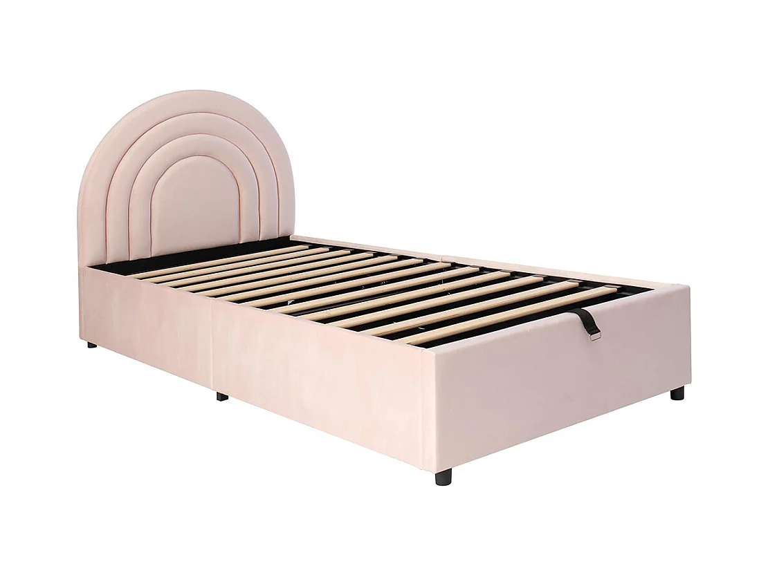 Lit coffre rembourré rose 90x200 cm pour enfant et adolescent avec sommier à lattes tête de lit rangement velours montage facile