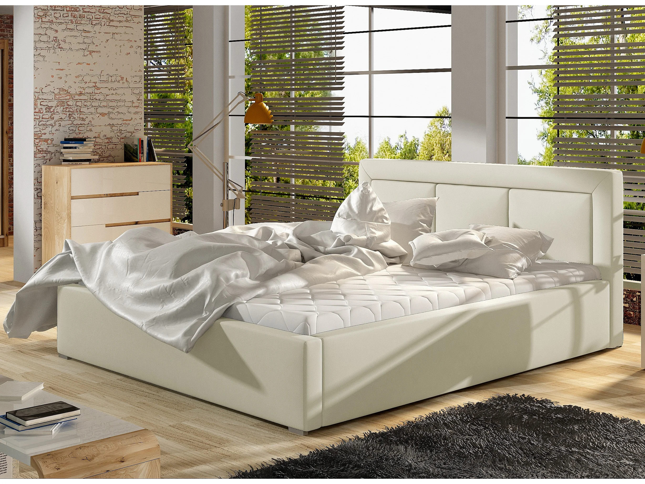 Lit coffre simili cuir beige clair grand carré capitonné Berlino - 4 tailles-140x200