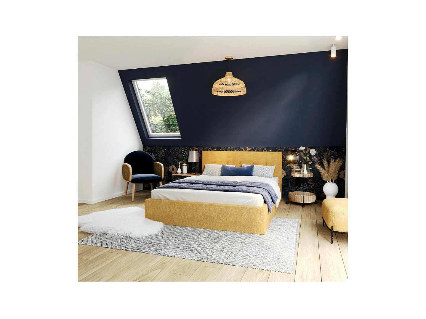 Lit Coffre Tulsa 140x190 cm - Sommier inclus Jaune miel