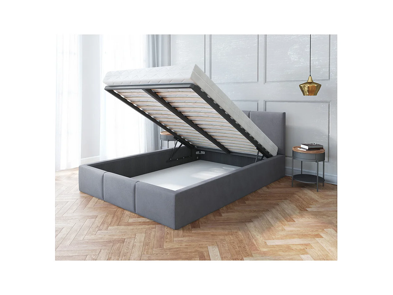 Lit coffre Tulum 140 x 200 cm avec sommier à lattes relevable Gris Foncé