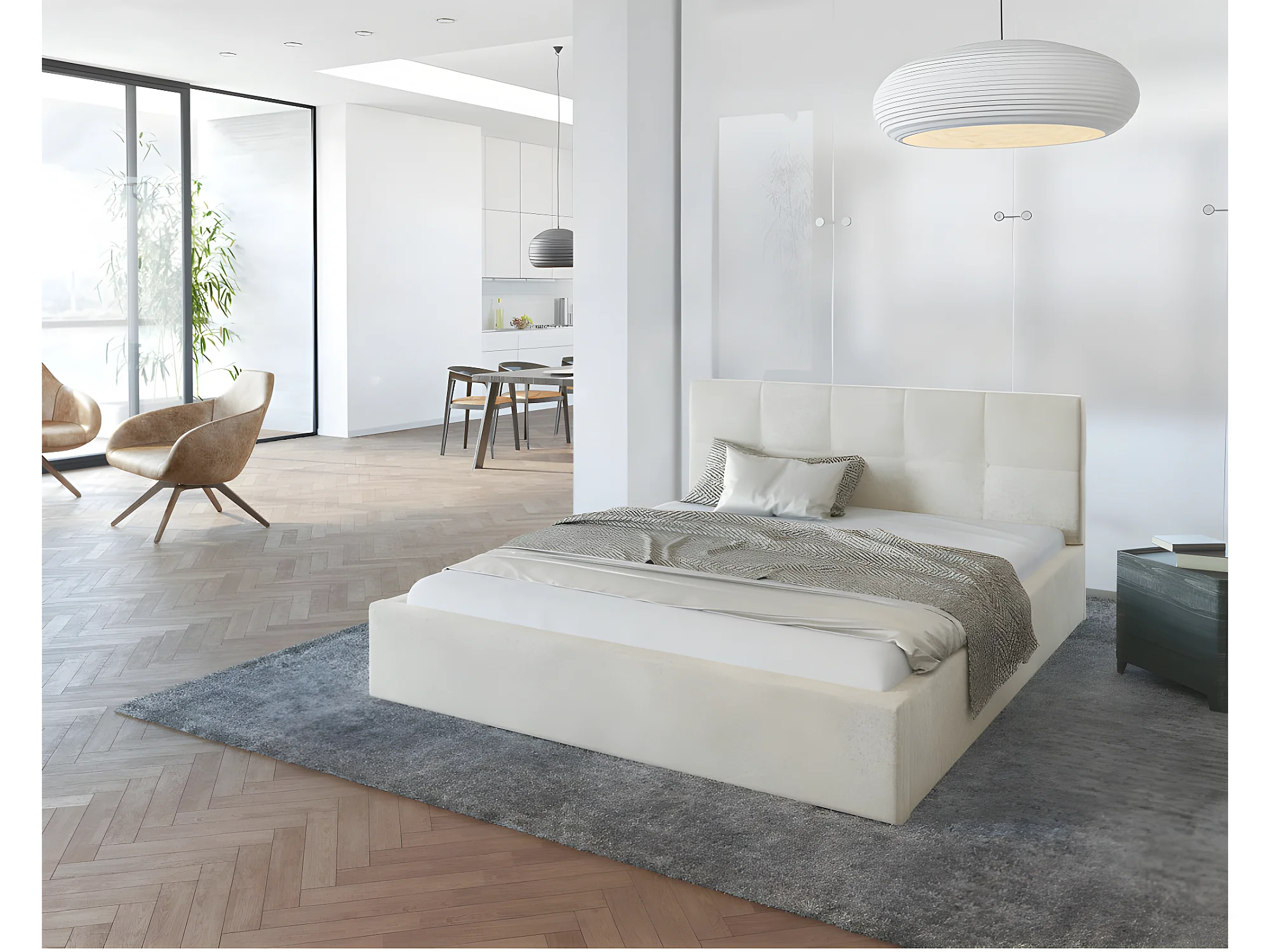 Lit coffre Vegas 140 x 190 cm avec sommier à lattes relevable Beige