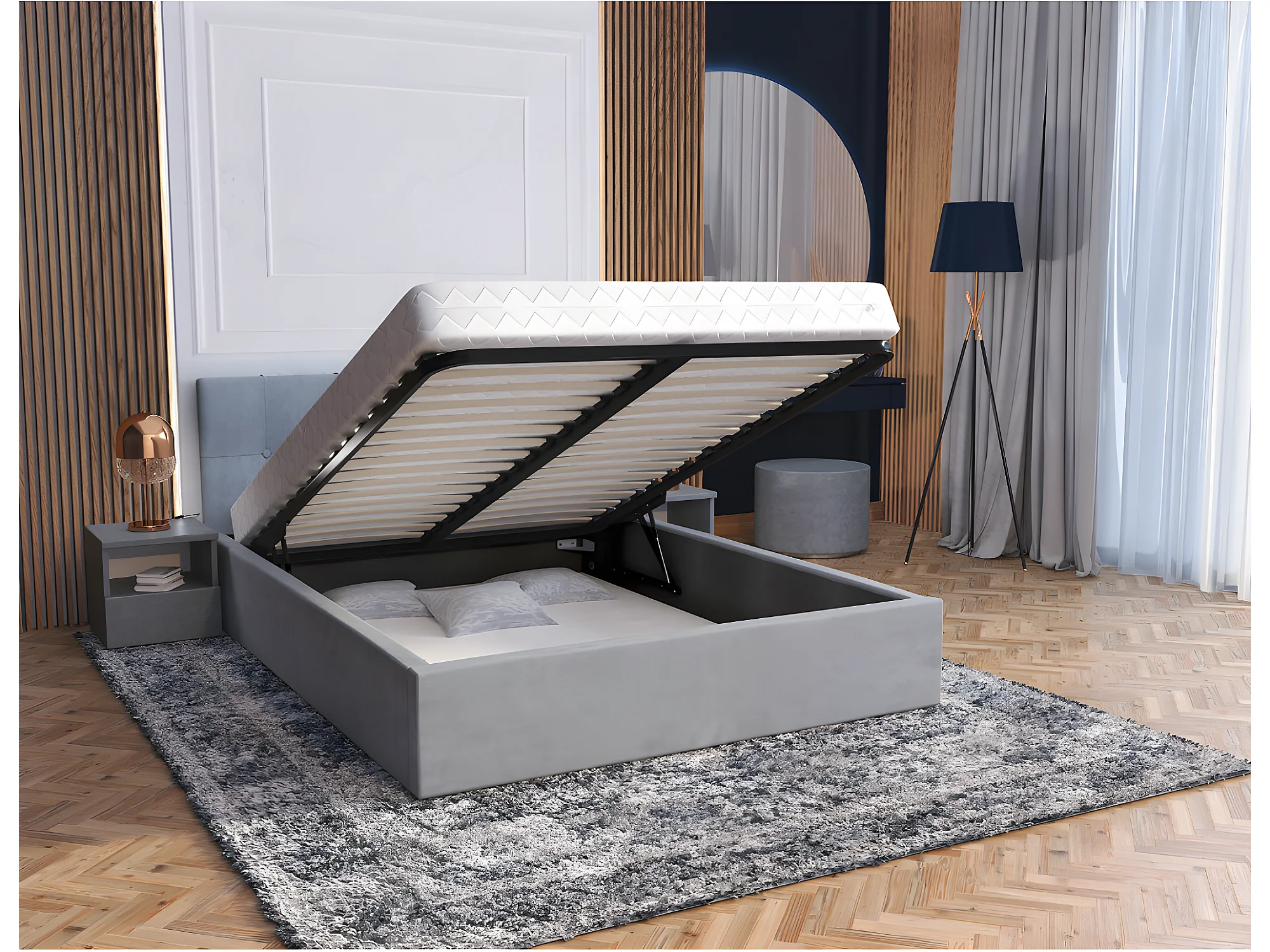 Lit coffre Vegas 140 x 190 cm avec sommier à lattes relevable Gris Clair
