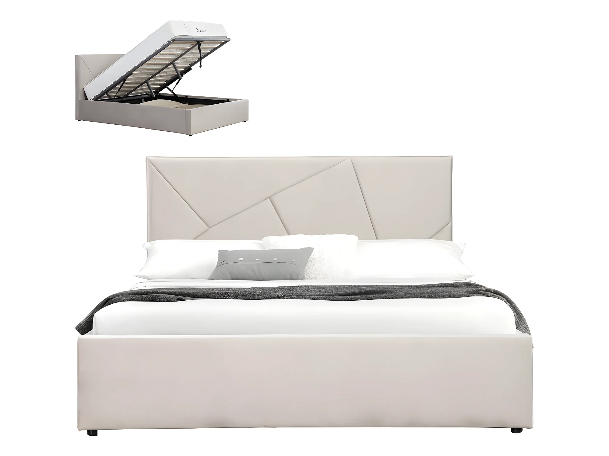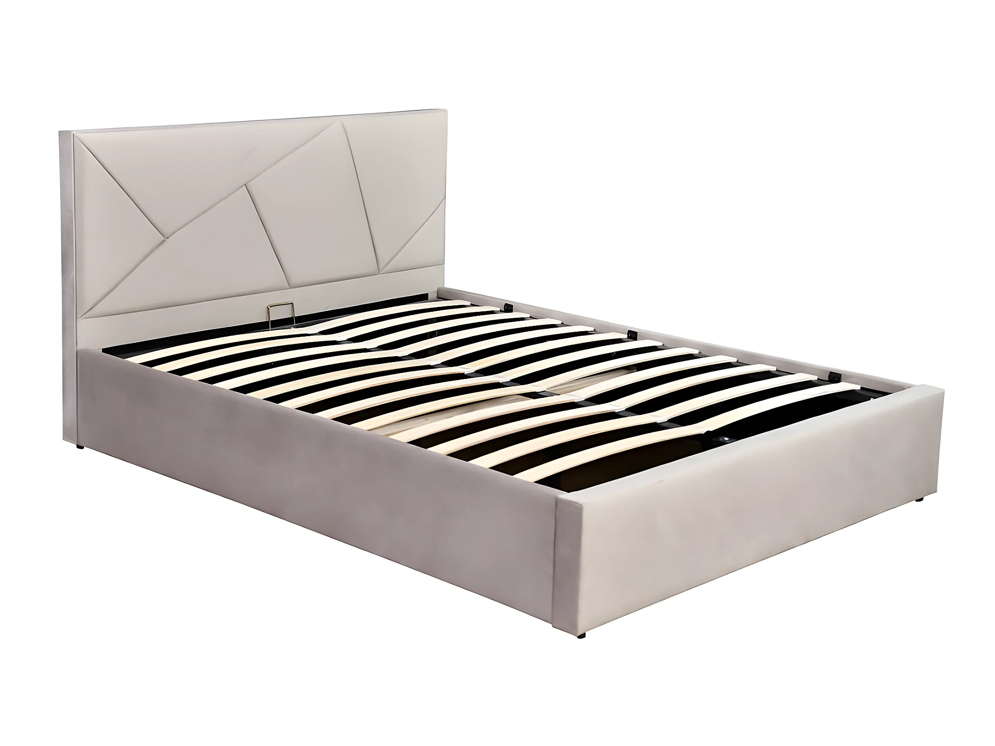 Lit coffre velours DAMARD - Velours Taupe - 140x190 cm