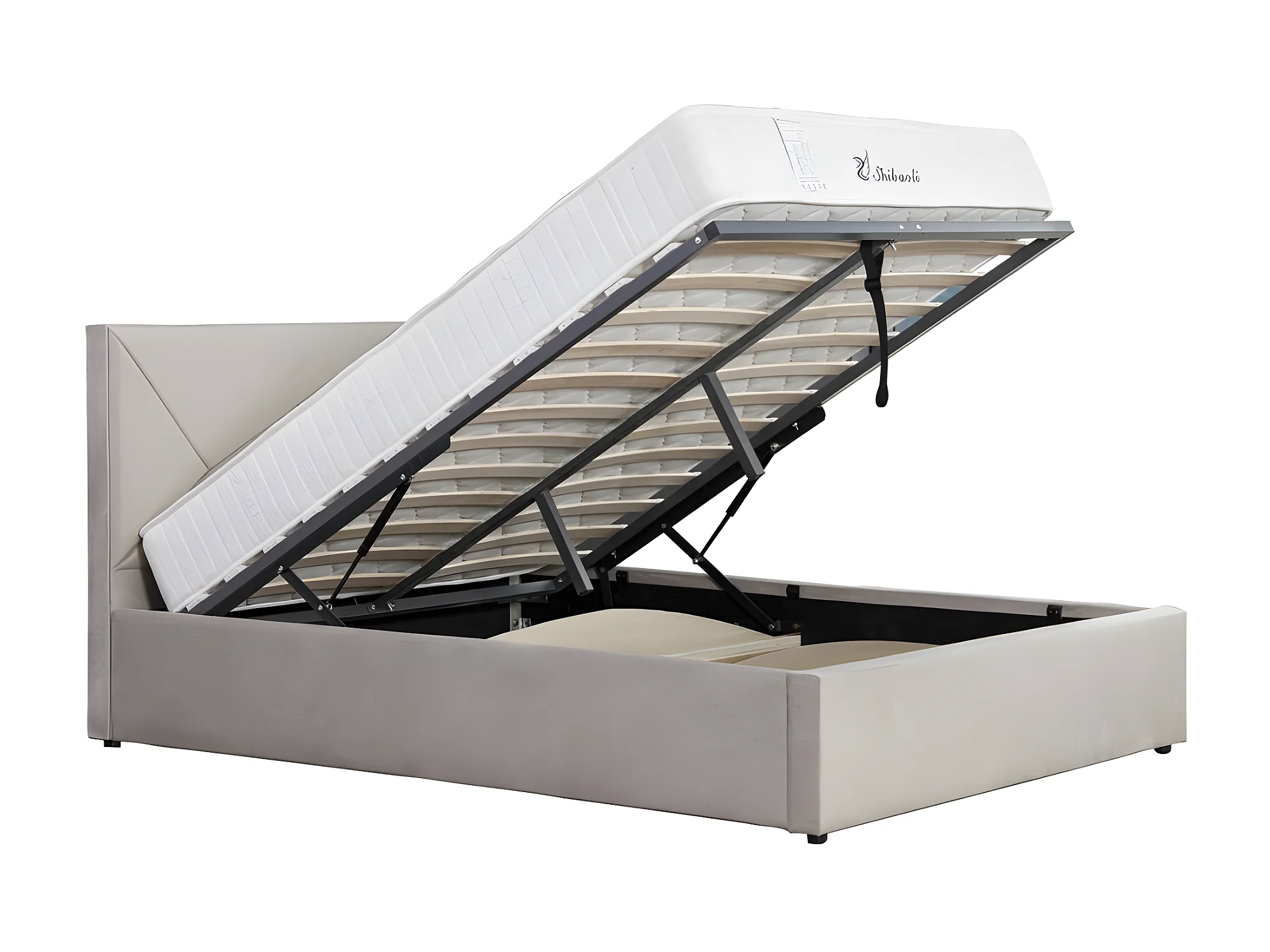 Lit coffre velours DAMARD - Velours Taupe - 180x200 cm