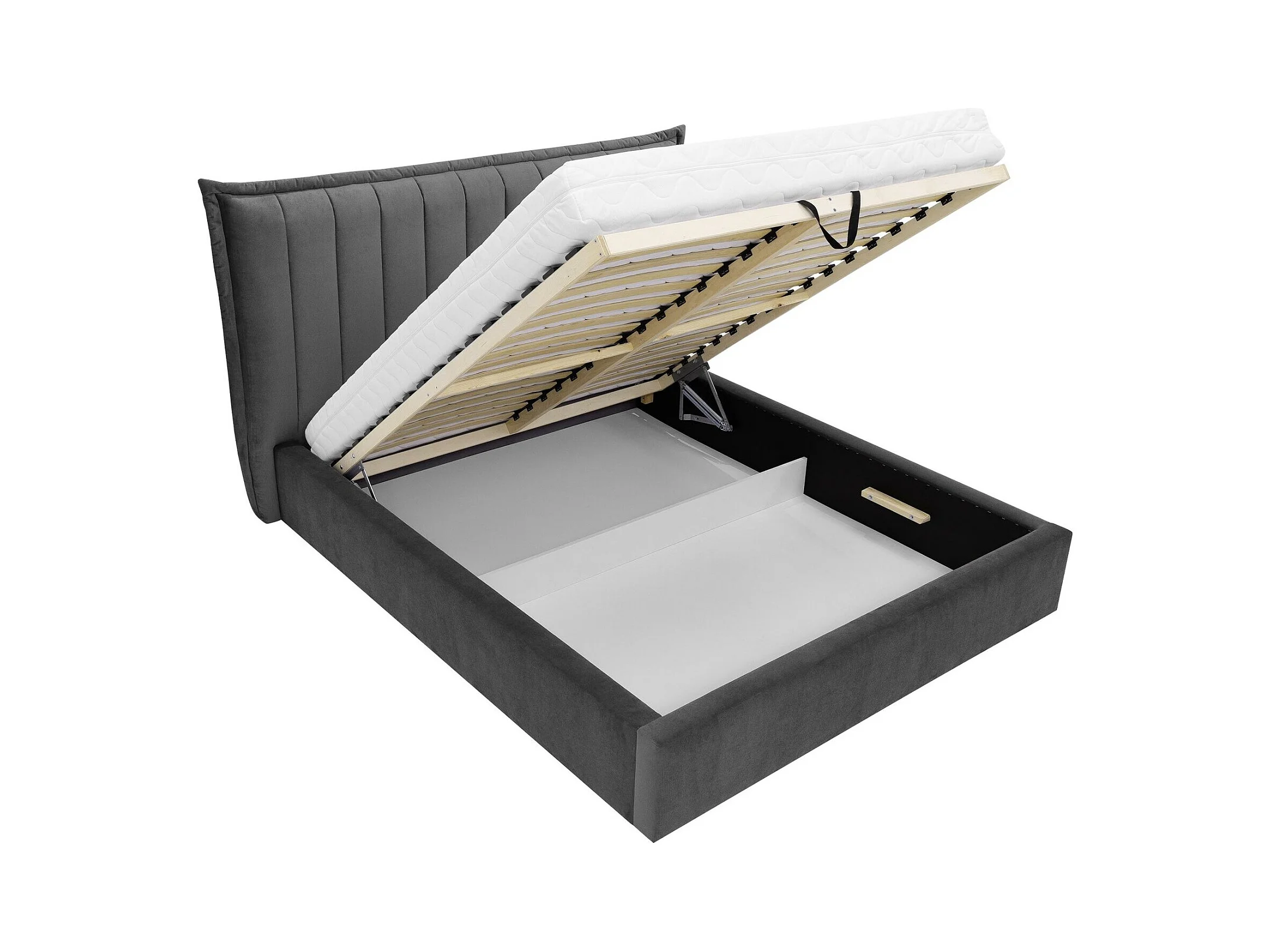Lit Comfivo 382, Double, Bleu, 160x200, Tapisserie, Sommier à lattes, 210x224x122cm