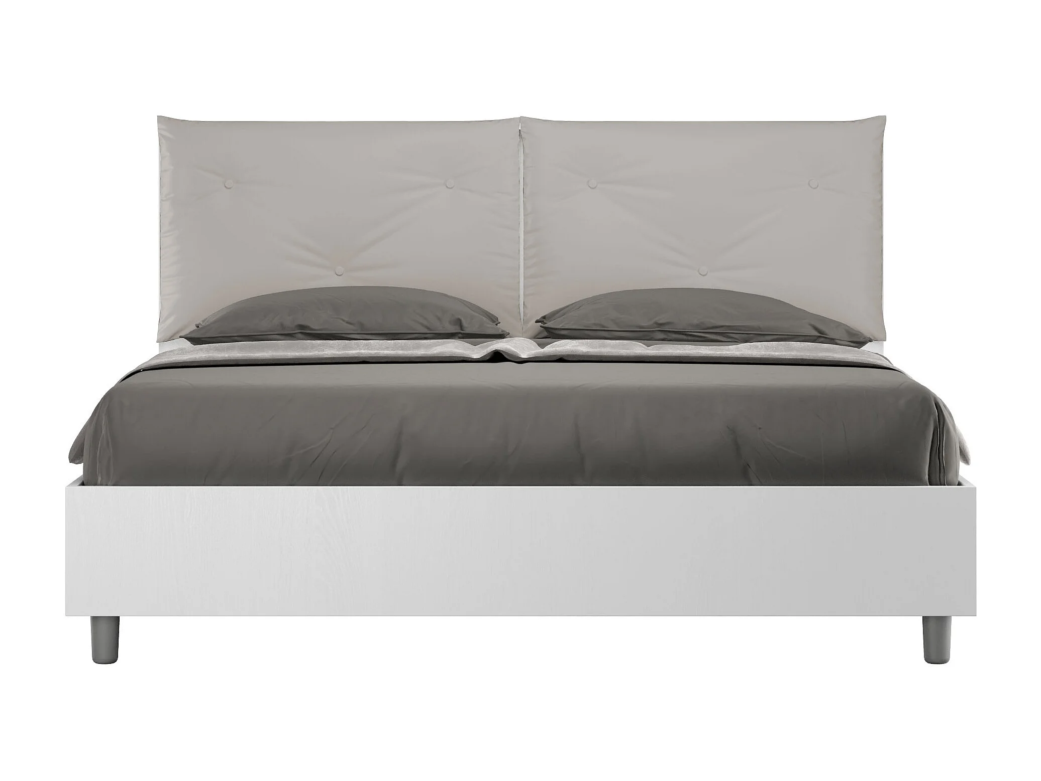 Lit double avec rangement, double relevable, 160x200 cm, bois de frêne blanc, coussins simili cuir gris tourterelle, Egos Appia