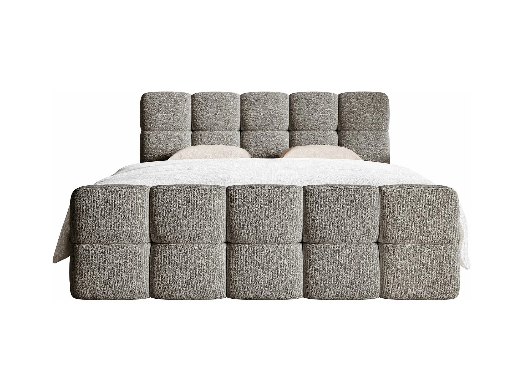 Lit continental - 160x200 cm - en bouclette gris - CLOUDY