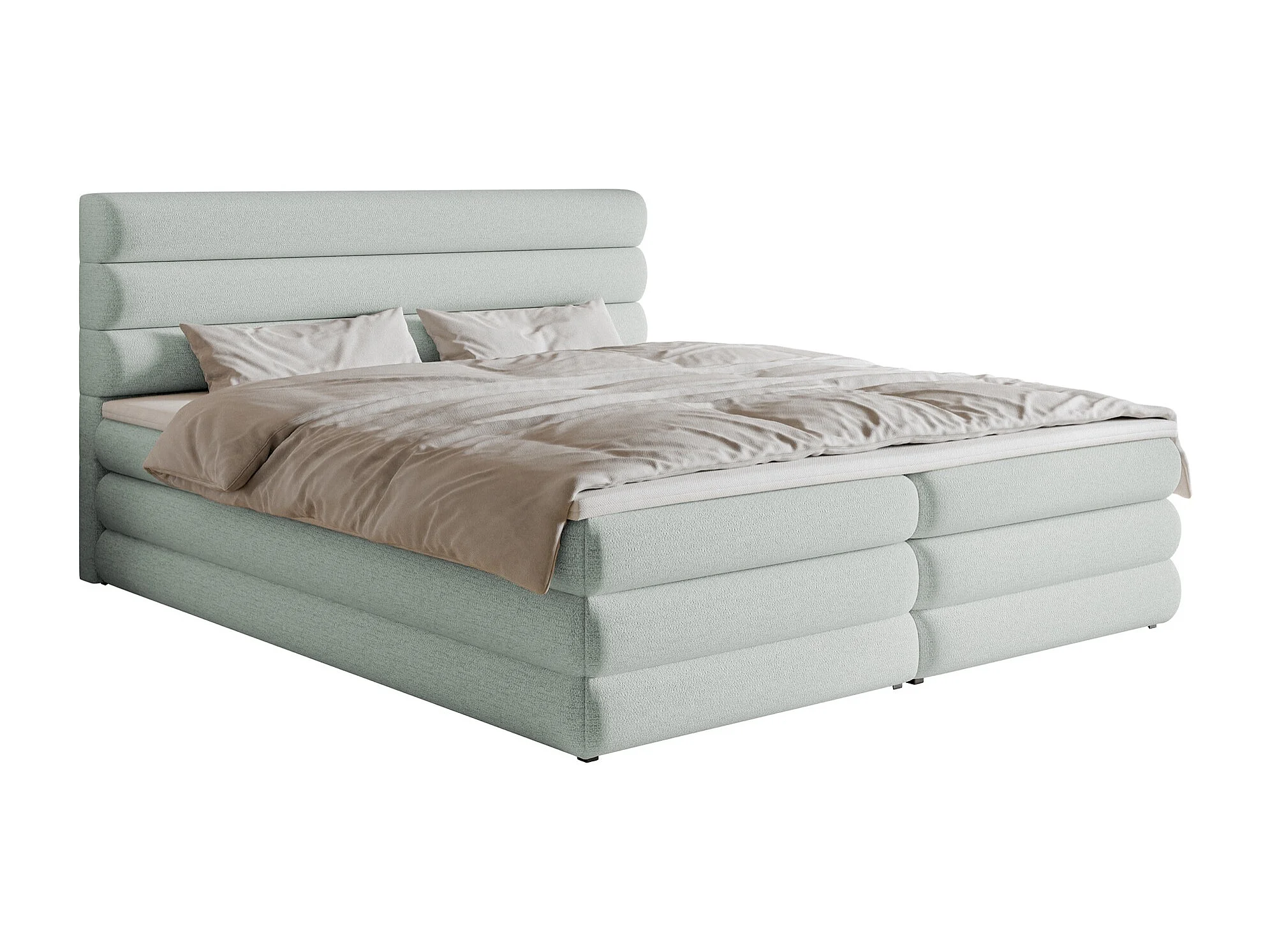 Lit continental - 160x200 cm - en tissu chenille gris clair - ALEGRE