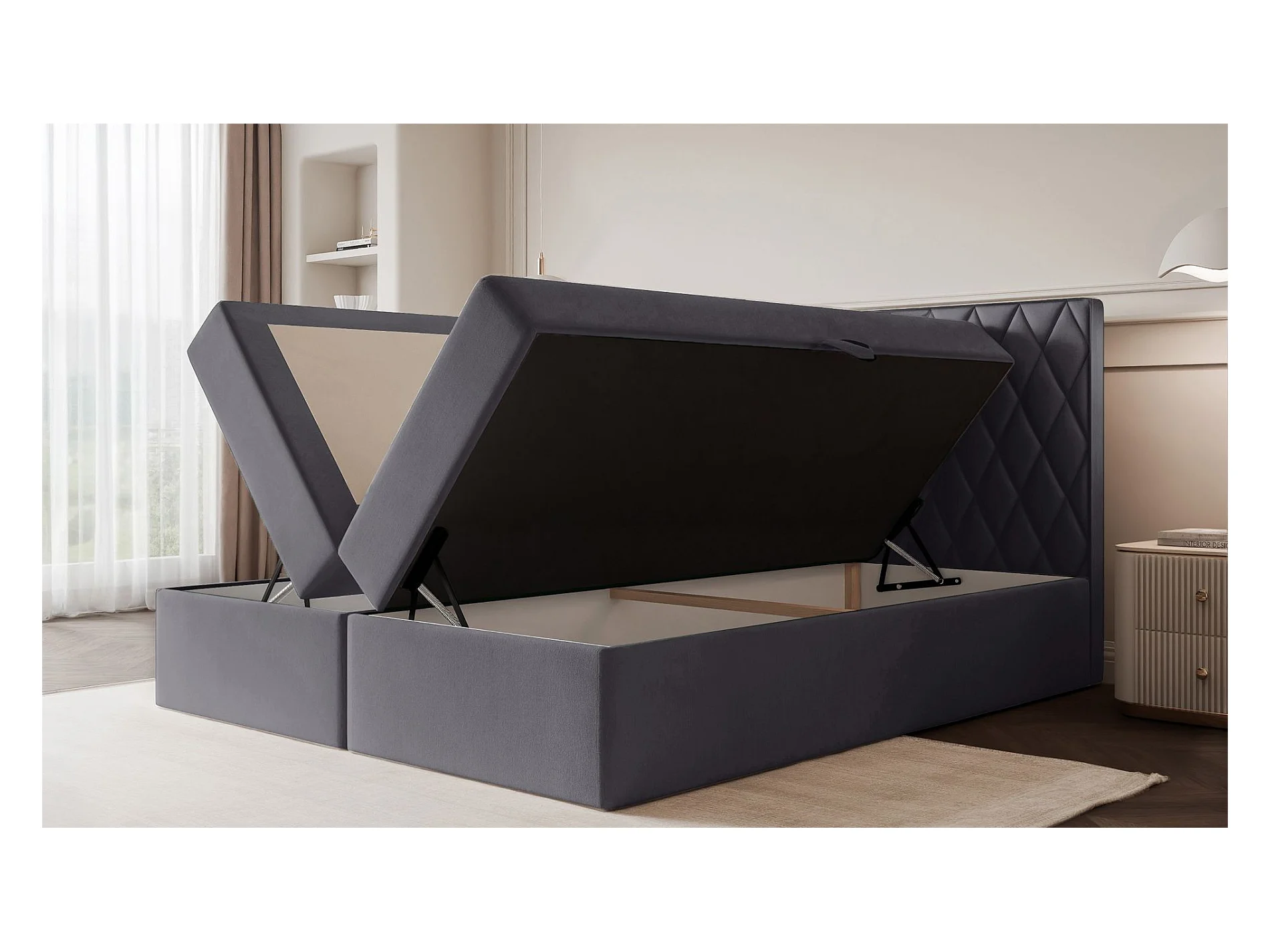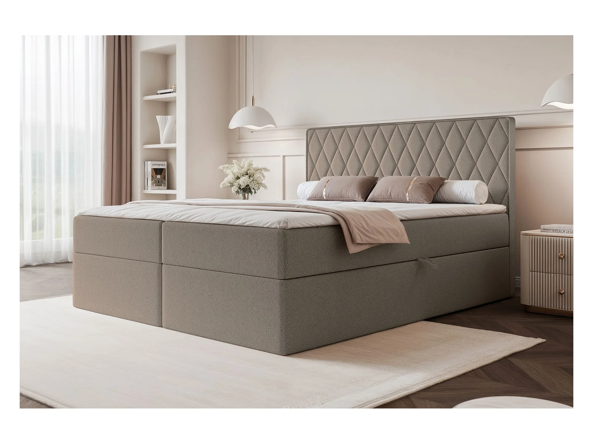 Lit continental - 180x200 cm - en tissu chenille marron clair - CARENZO