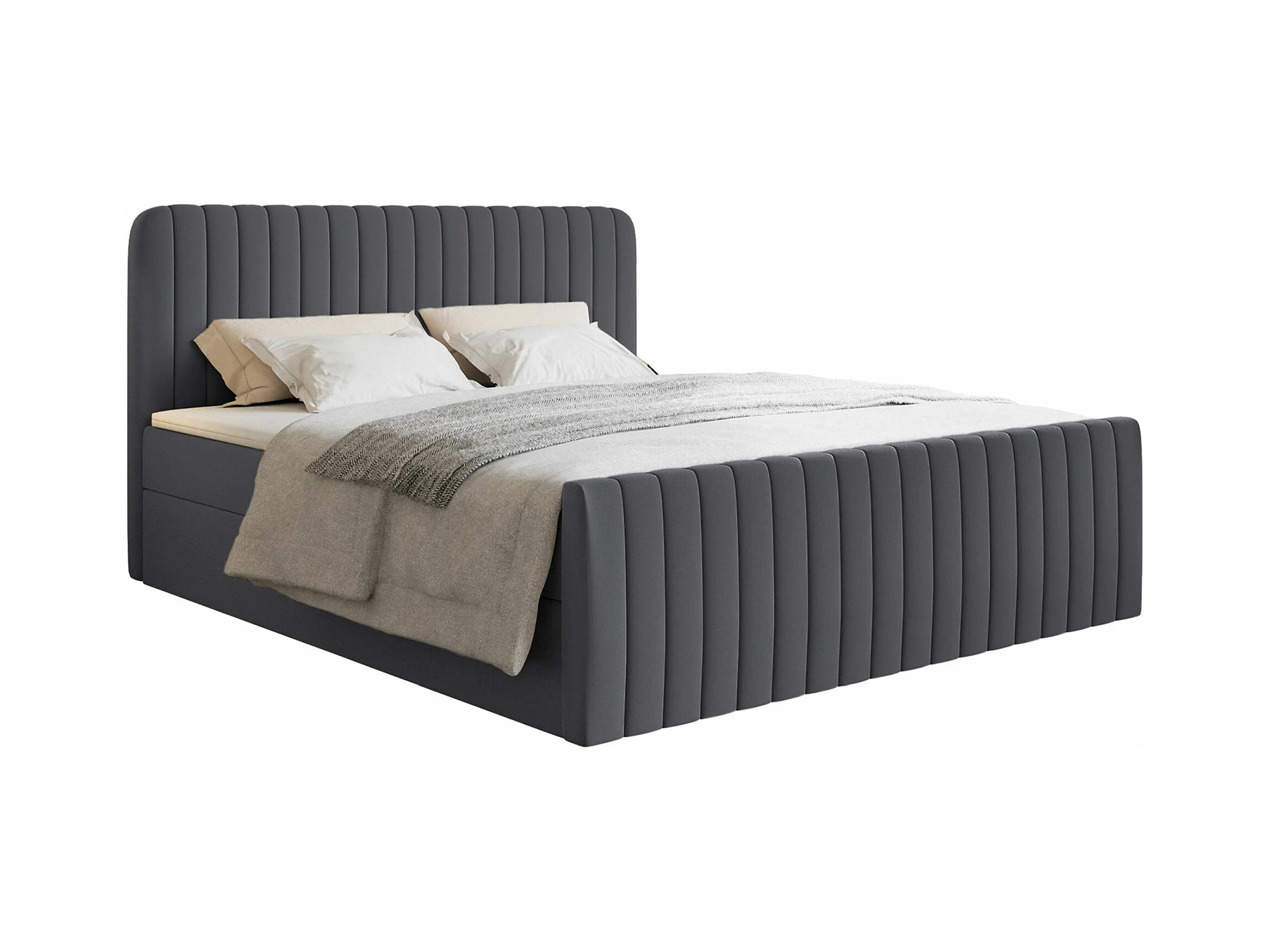 Lit continental avec surmatelas - 140x200 cm - chenille graphite - SALIANO