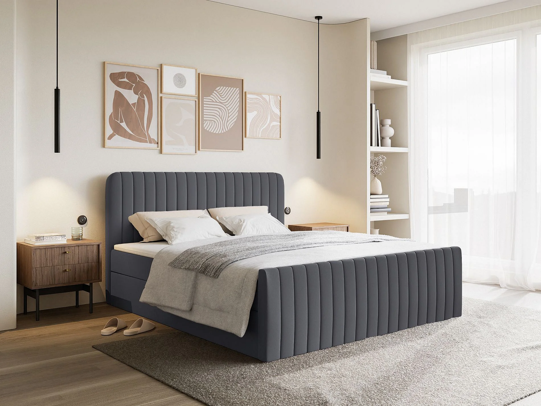 Lit continental avec surmatelas - 160x200 cm - chenille graphite - SALIANO