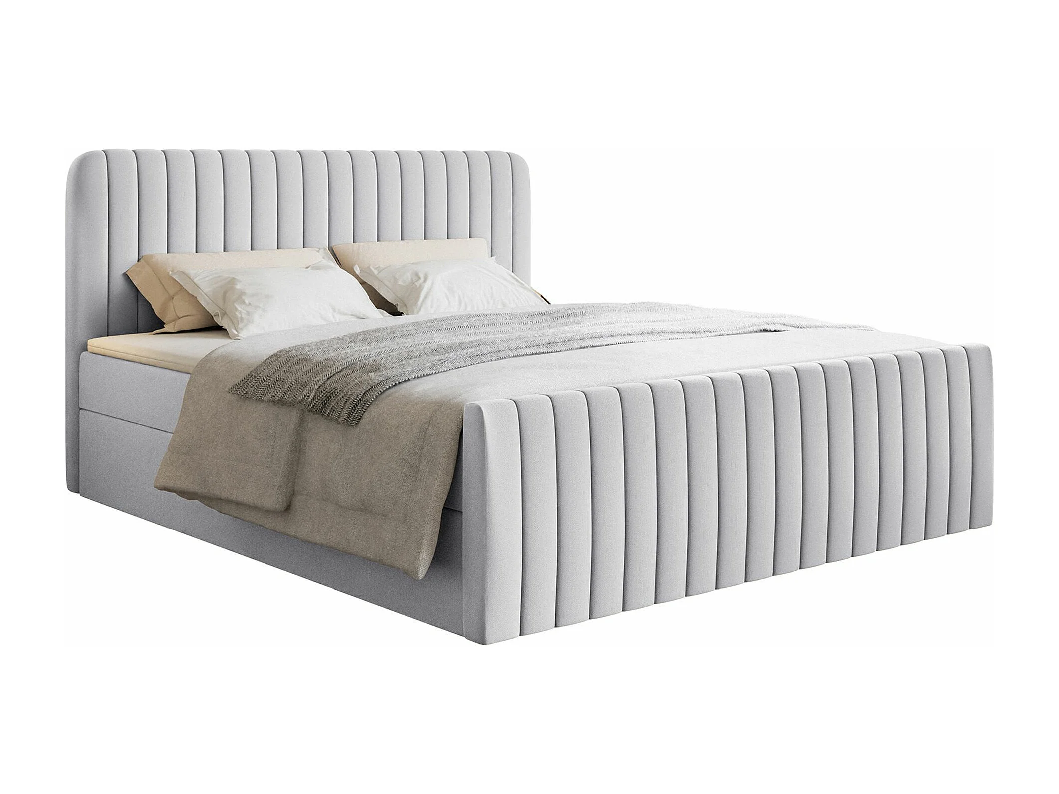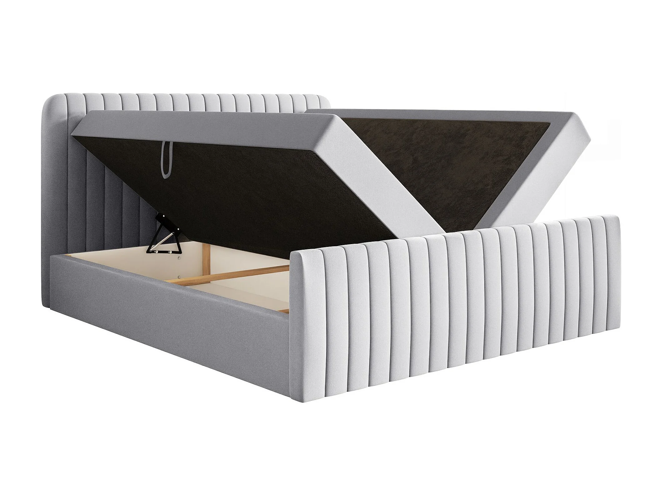 Lit continental avec surmatelas - 160x200 cm - chenille gris clair - SALIANO