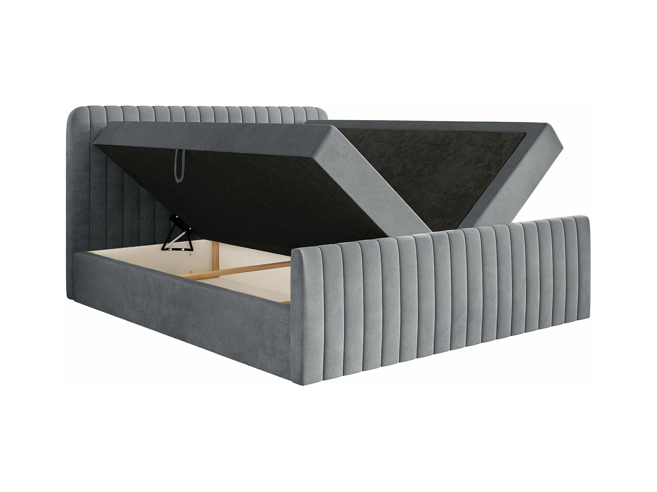 Lit continental avec surmatelas - 160x200 cm - velours gris - SALIANO