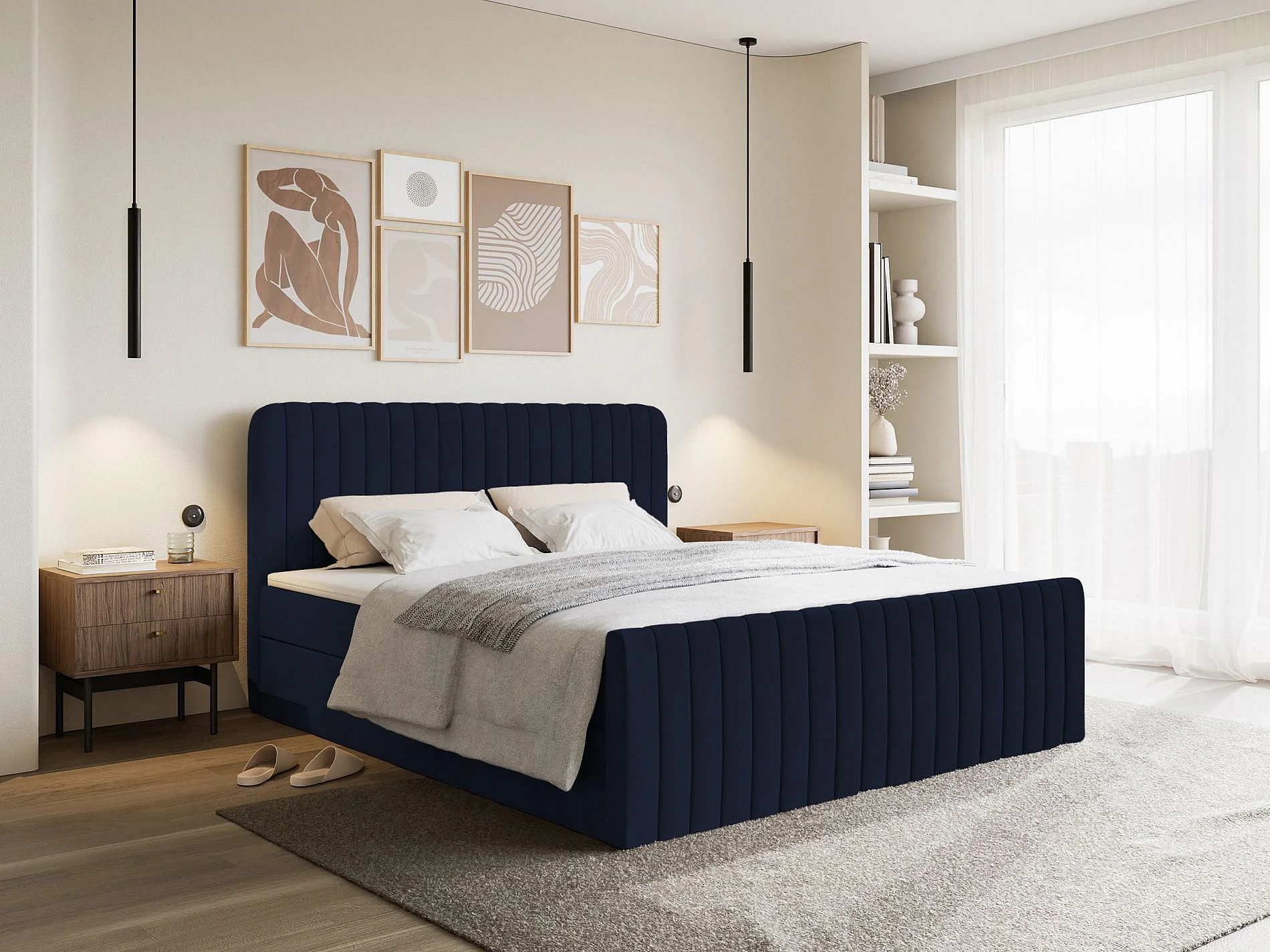 Lit continental avec surmatelas - 160x200 cm - velours marine - SALIANO