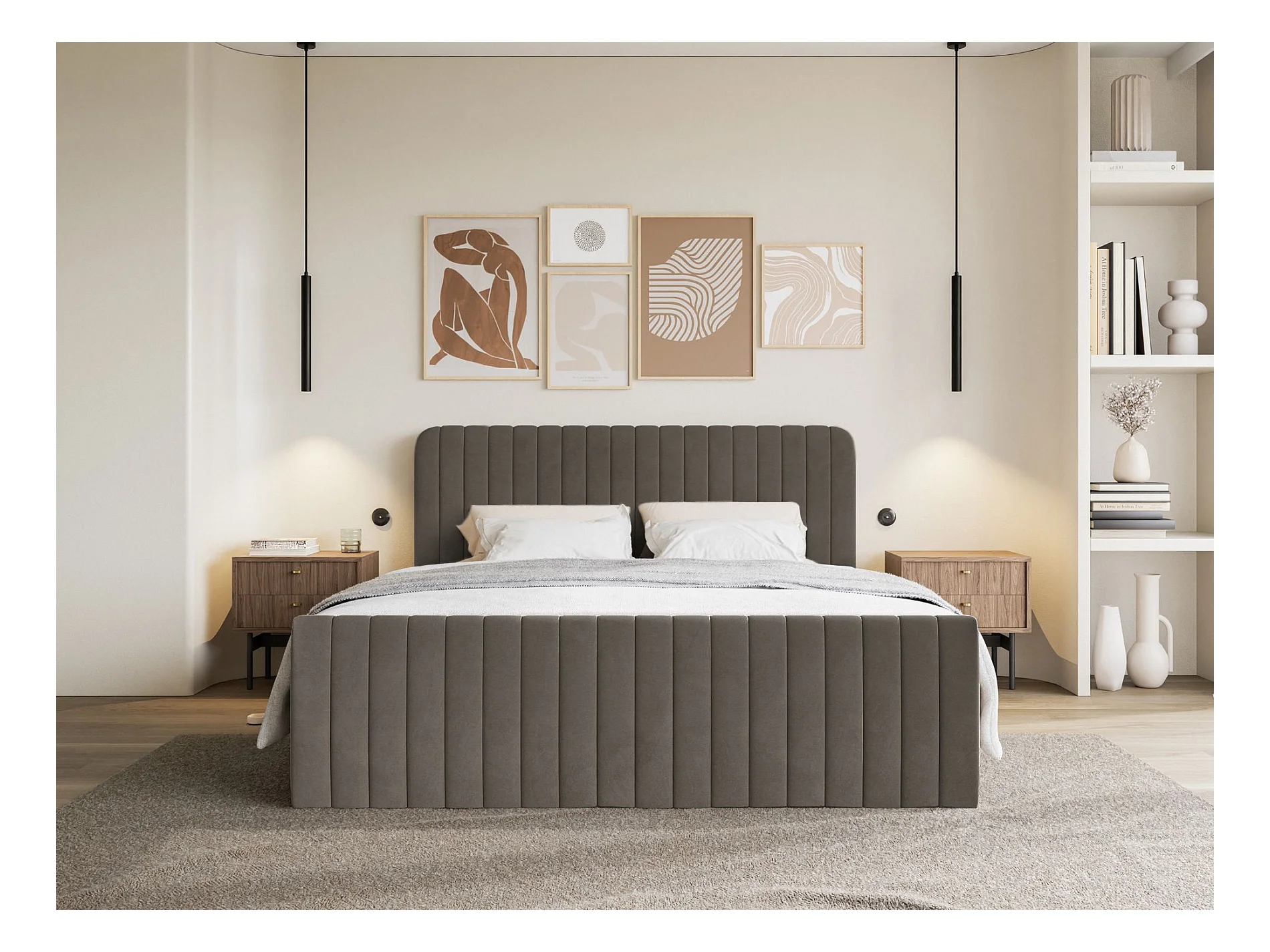 Lit continental avec surmatelas - 200x200 cm - velours brun - SALIANO
