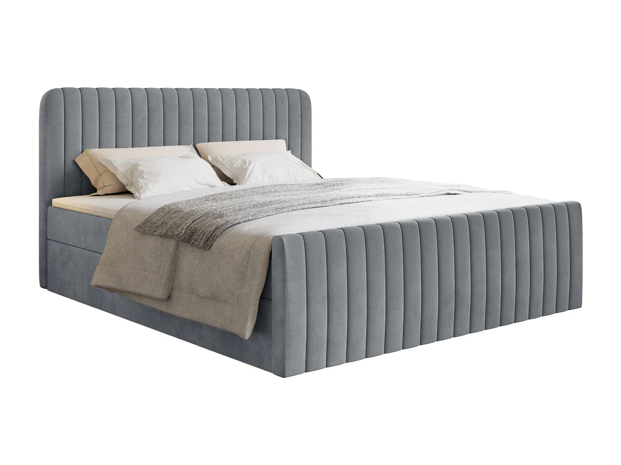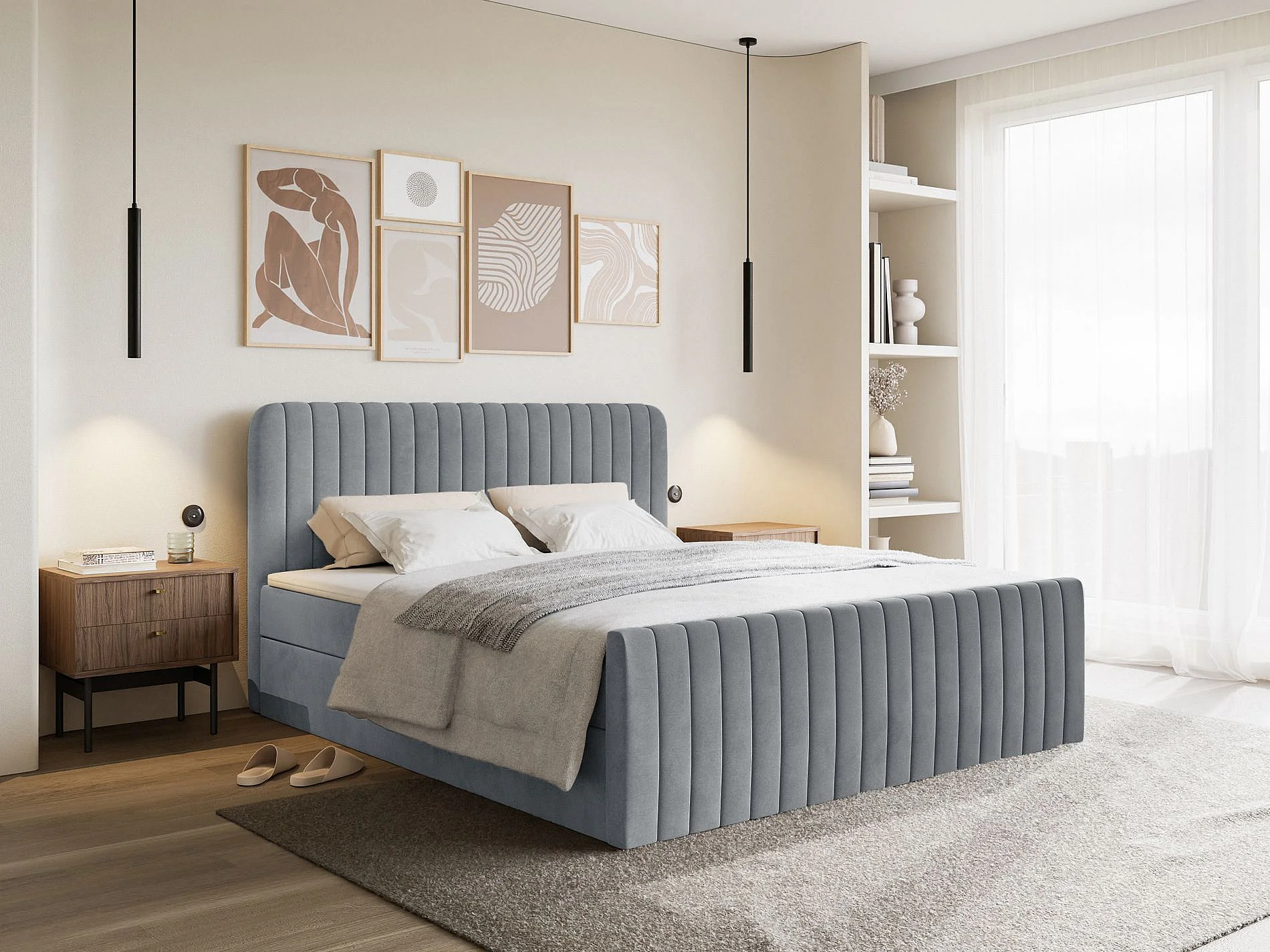 Lit continental avec surmatelas - 200x200 cm - velours gris - SALIANO