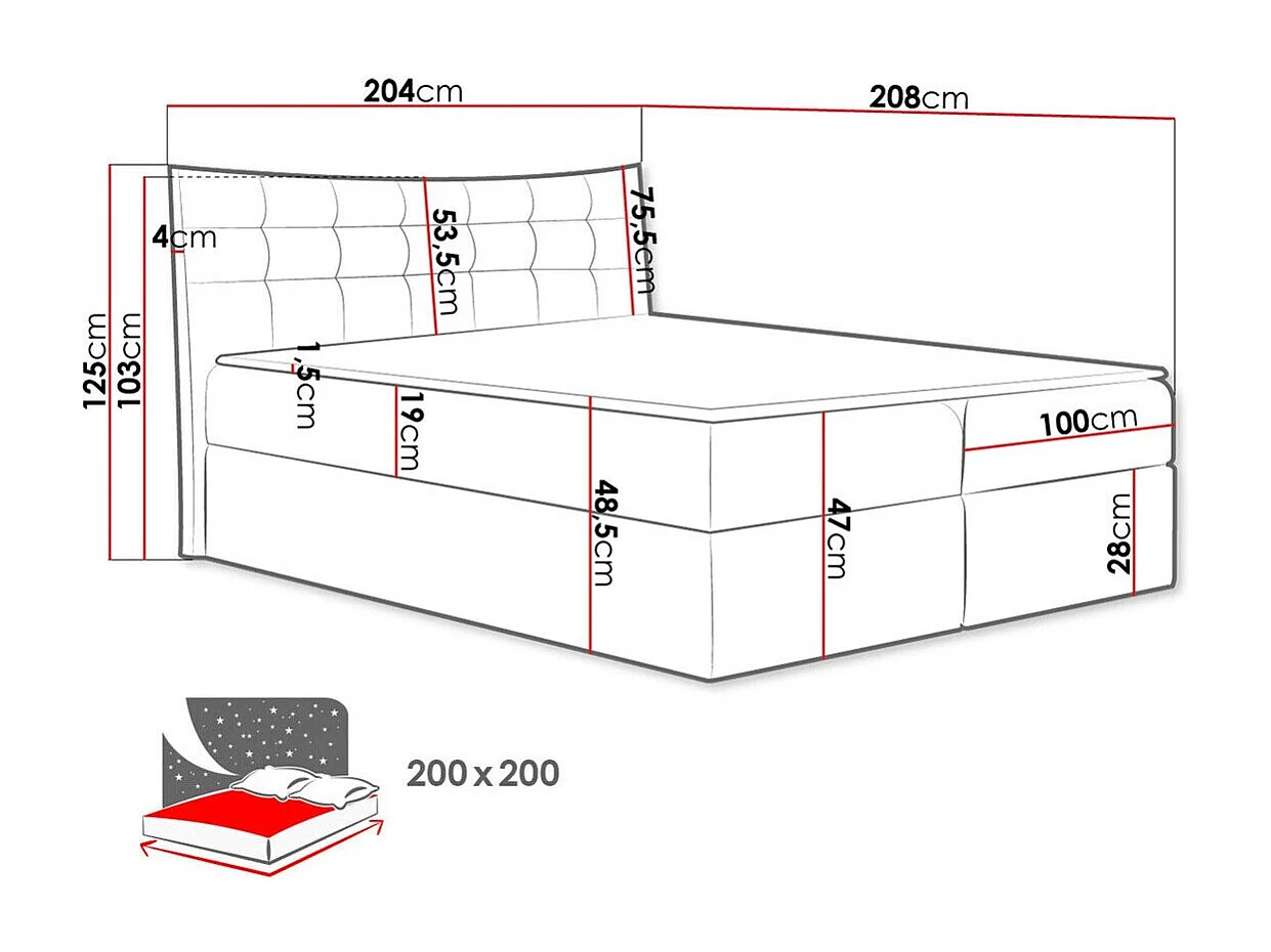 Lit continental Baltimore 157, Double, Continental, Jaune, 200x200, Tapisserie, 204x213cm