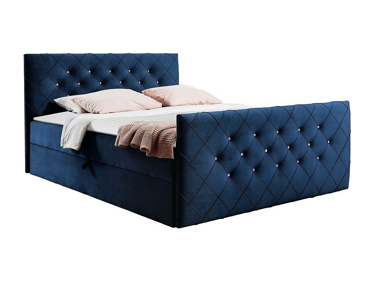 Lit continental Baltimore 158, Continental, Double, Bleu, 200x200, Tapisserie, 204x213cm