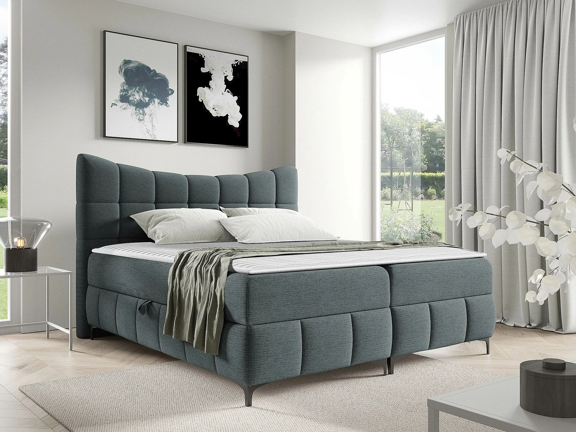 Lit continental Baltimore 193, Continental, Double, Gris, 200x200, Tapisserie, 204x210cm