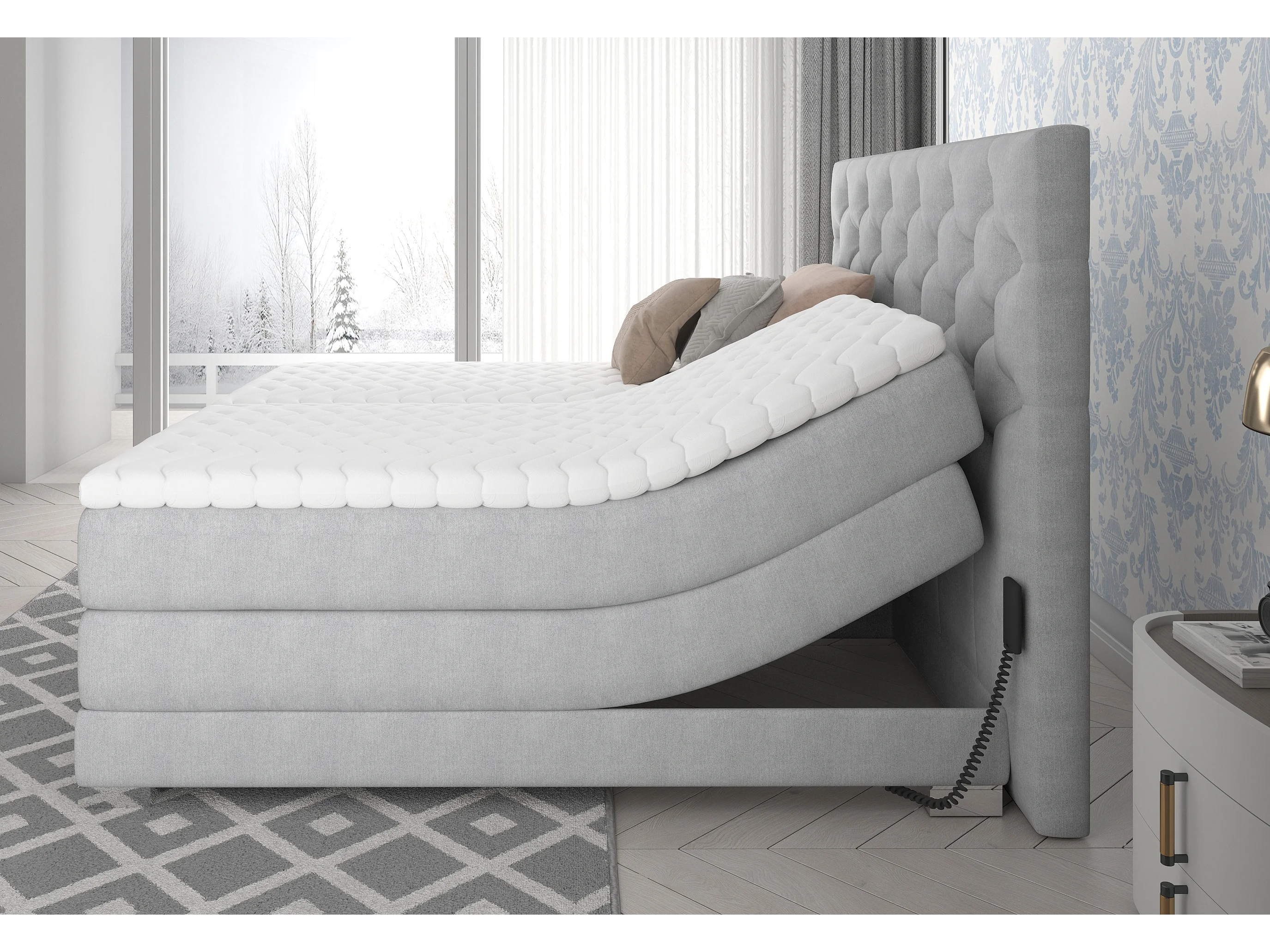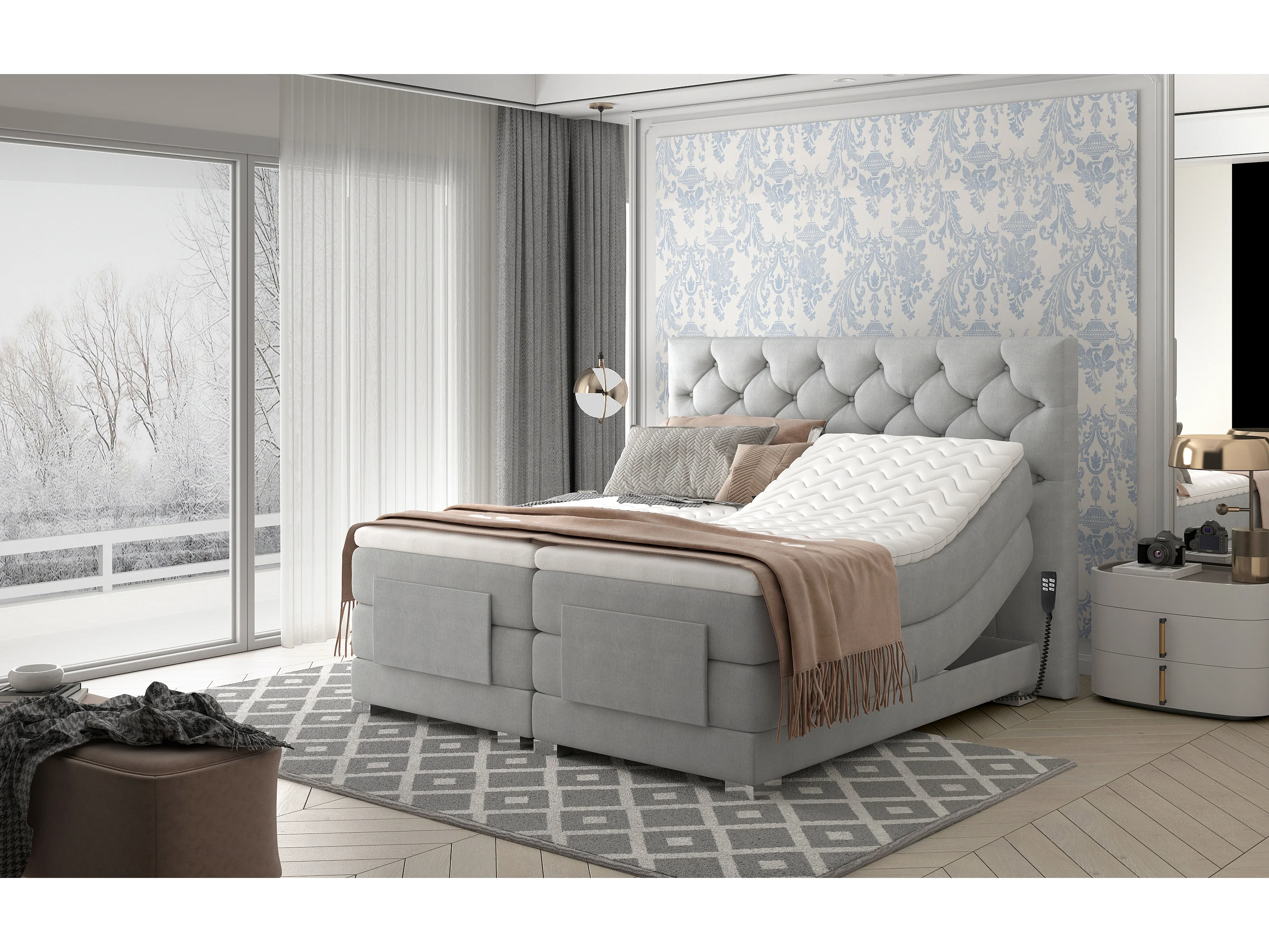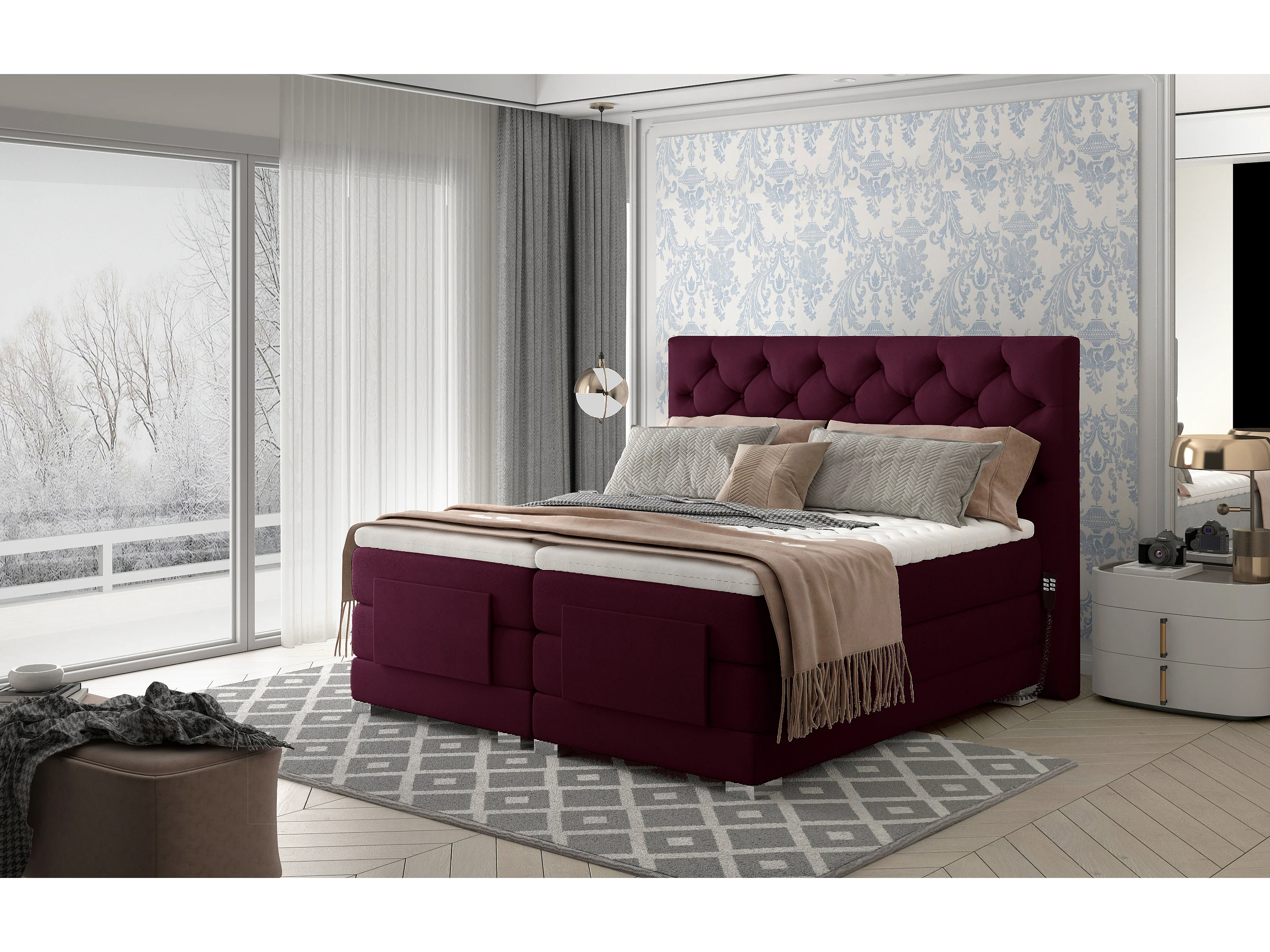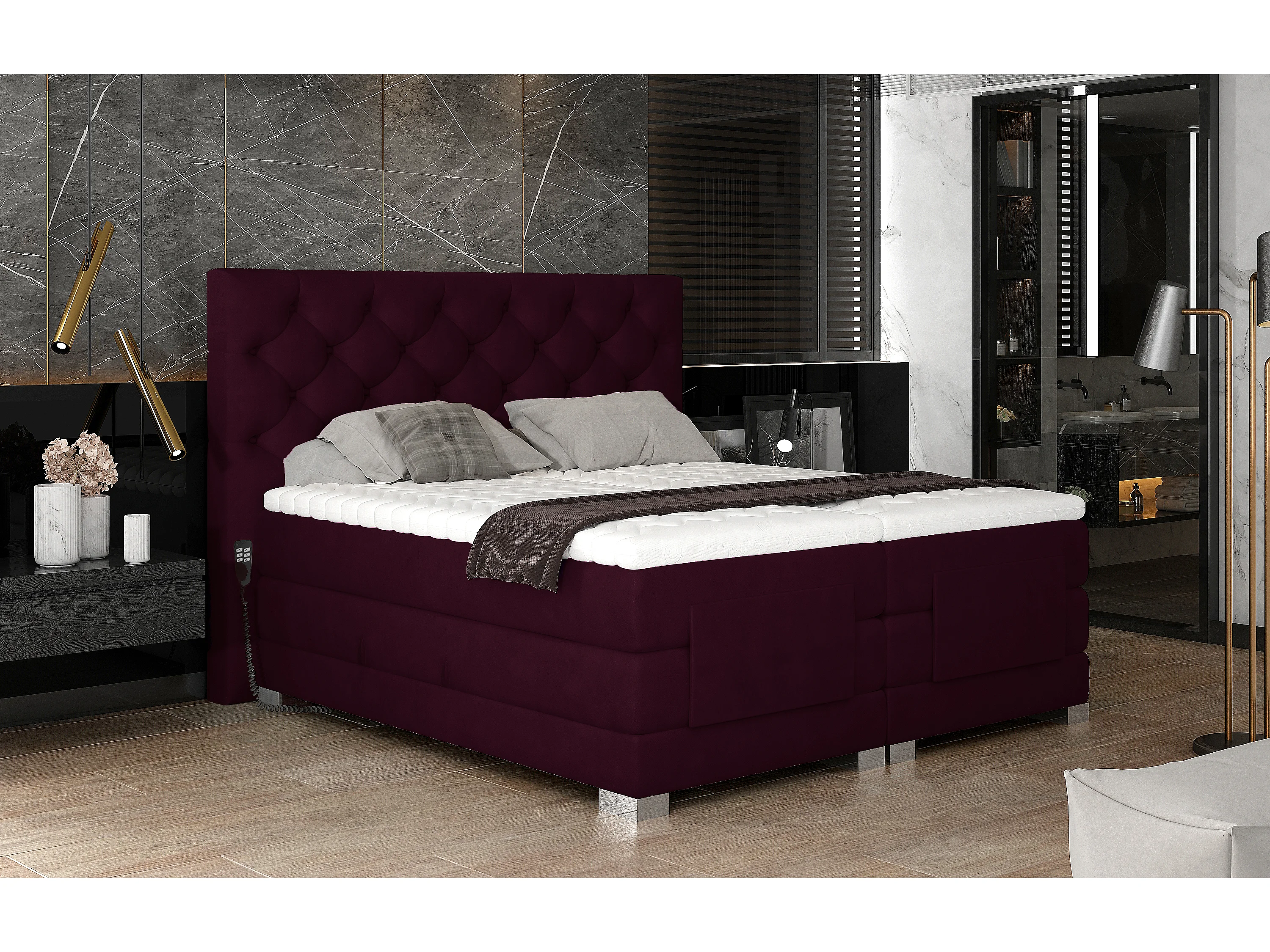 Lit continental électrique velours prune avec matelas et surmatelas Karmen-160x200