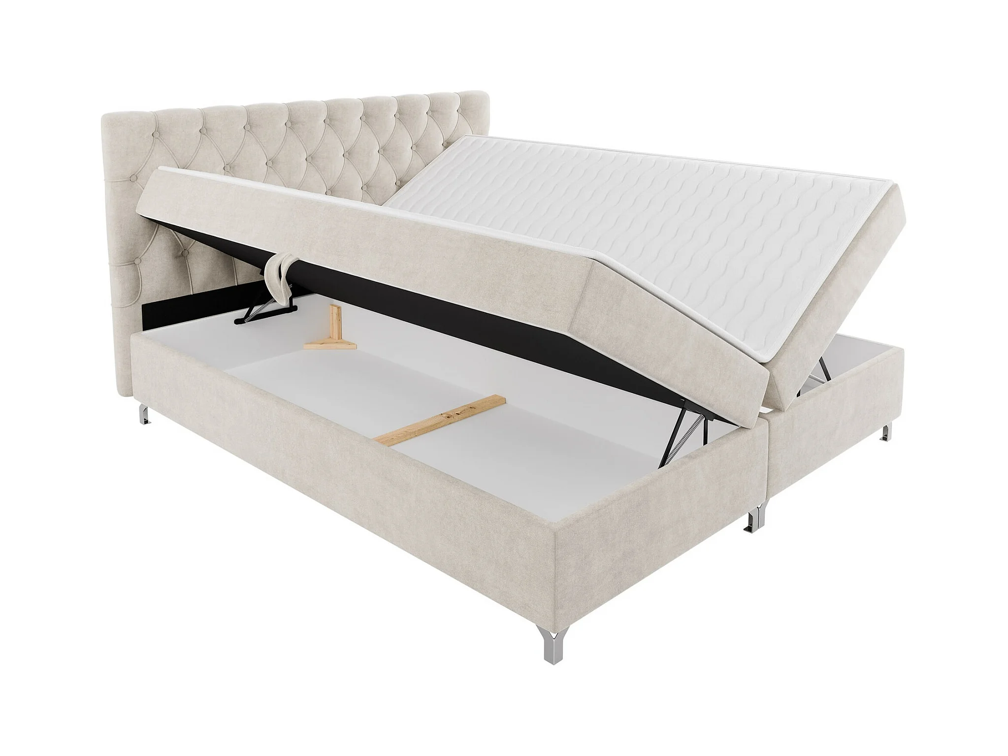 Lit continental Memphis 141, Double, Continental, Gris, 140x200, Sommier à lattes, 146cm