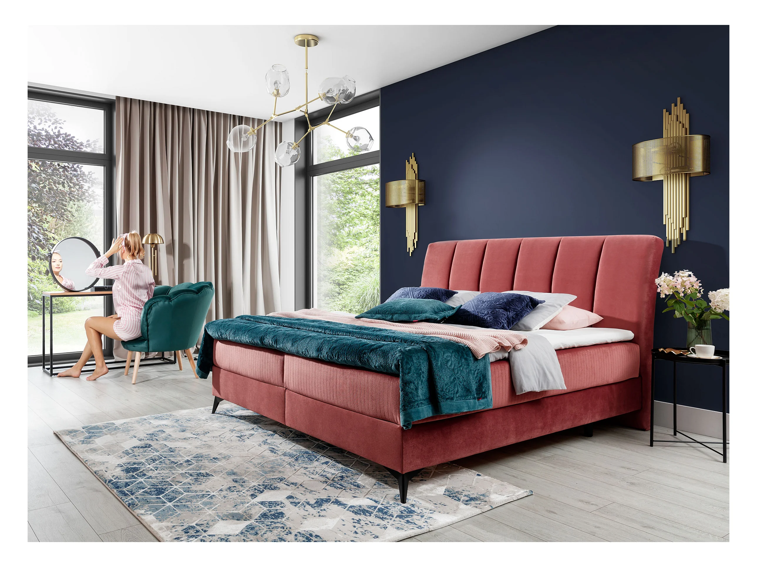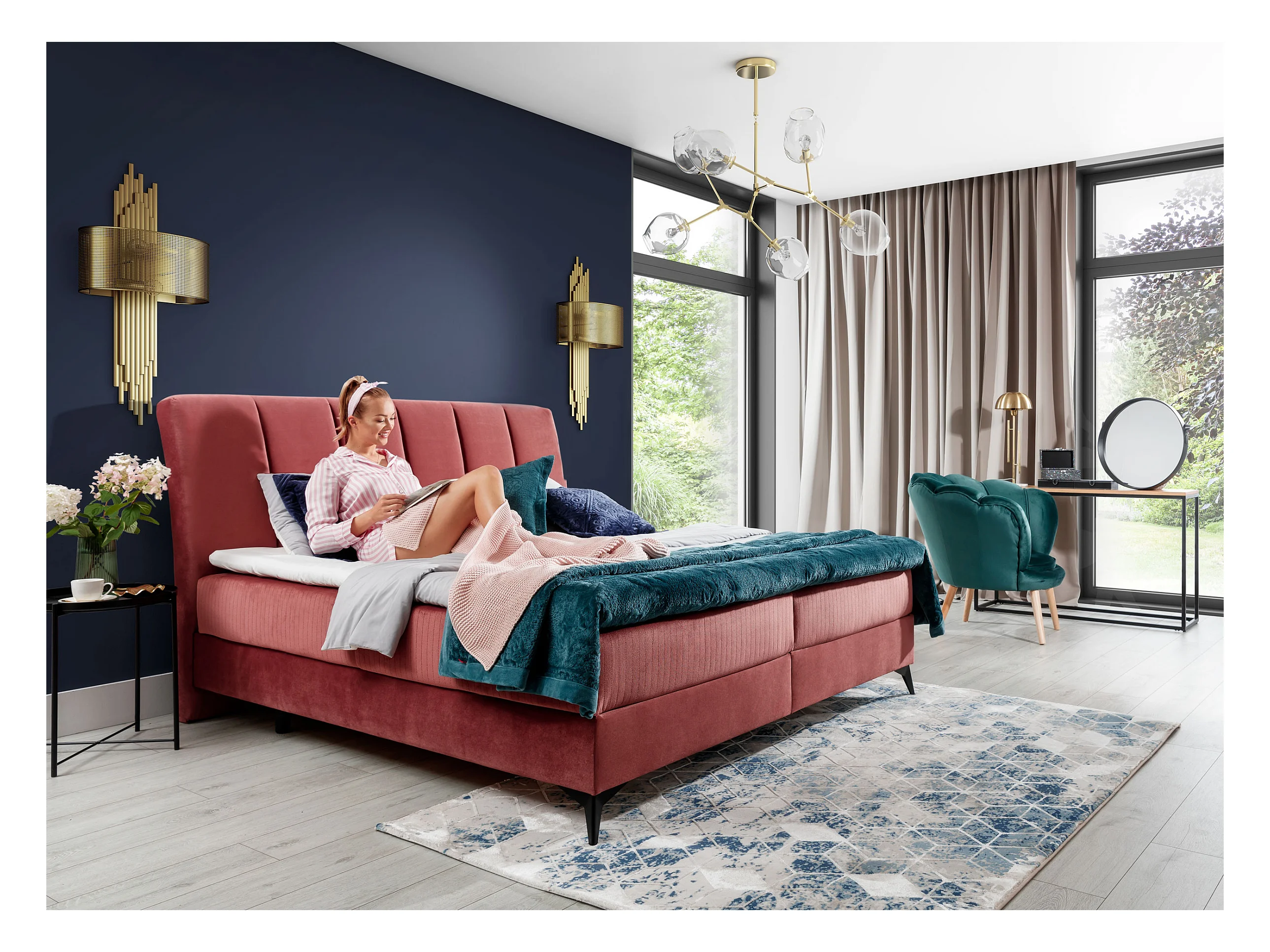 Lit continental moderne avec matelas velours abricot Brato-160x200