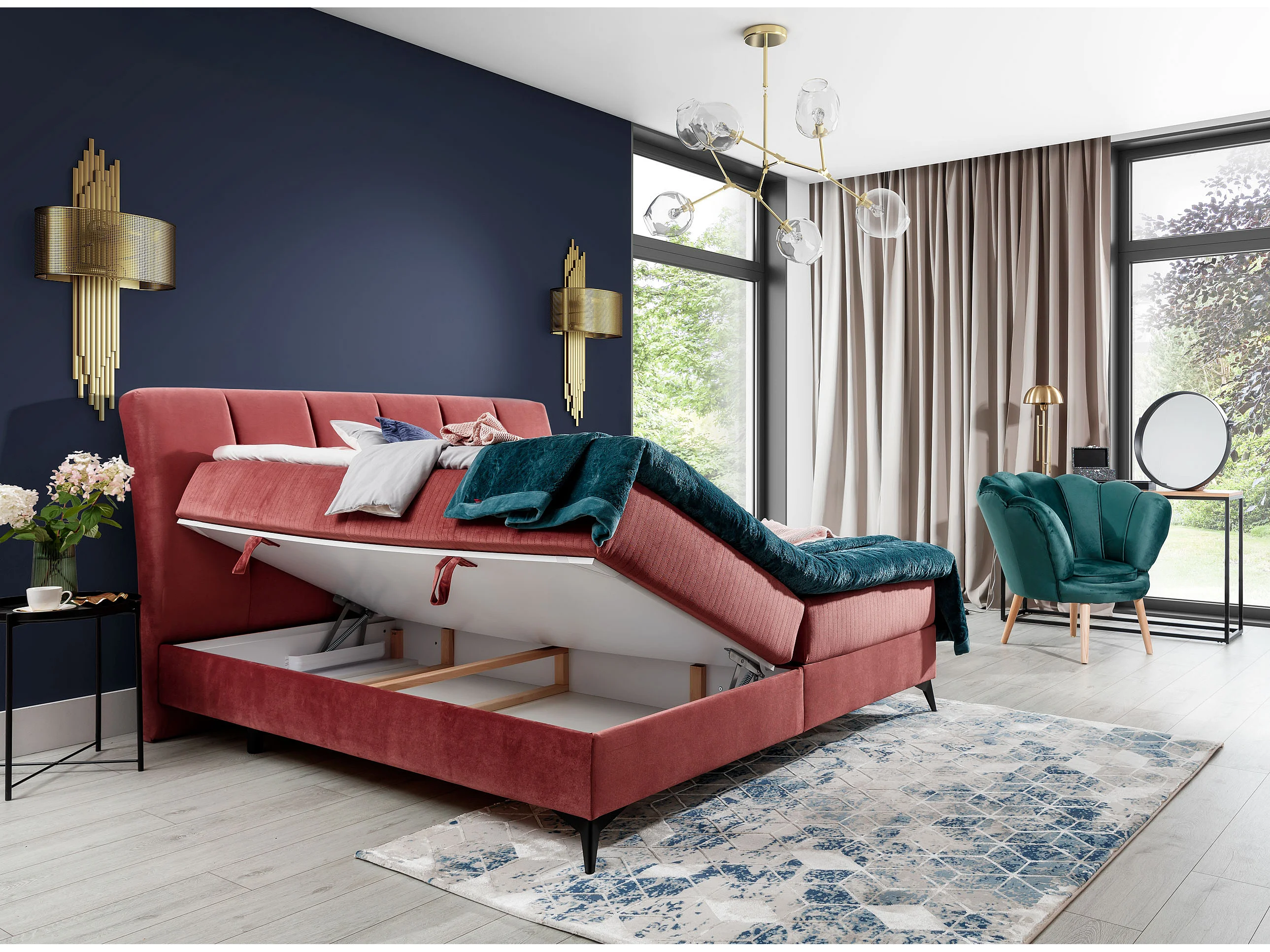 Lit continental moderne avec matelas velours bleu Brato-140x200