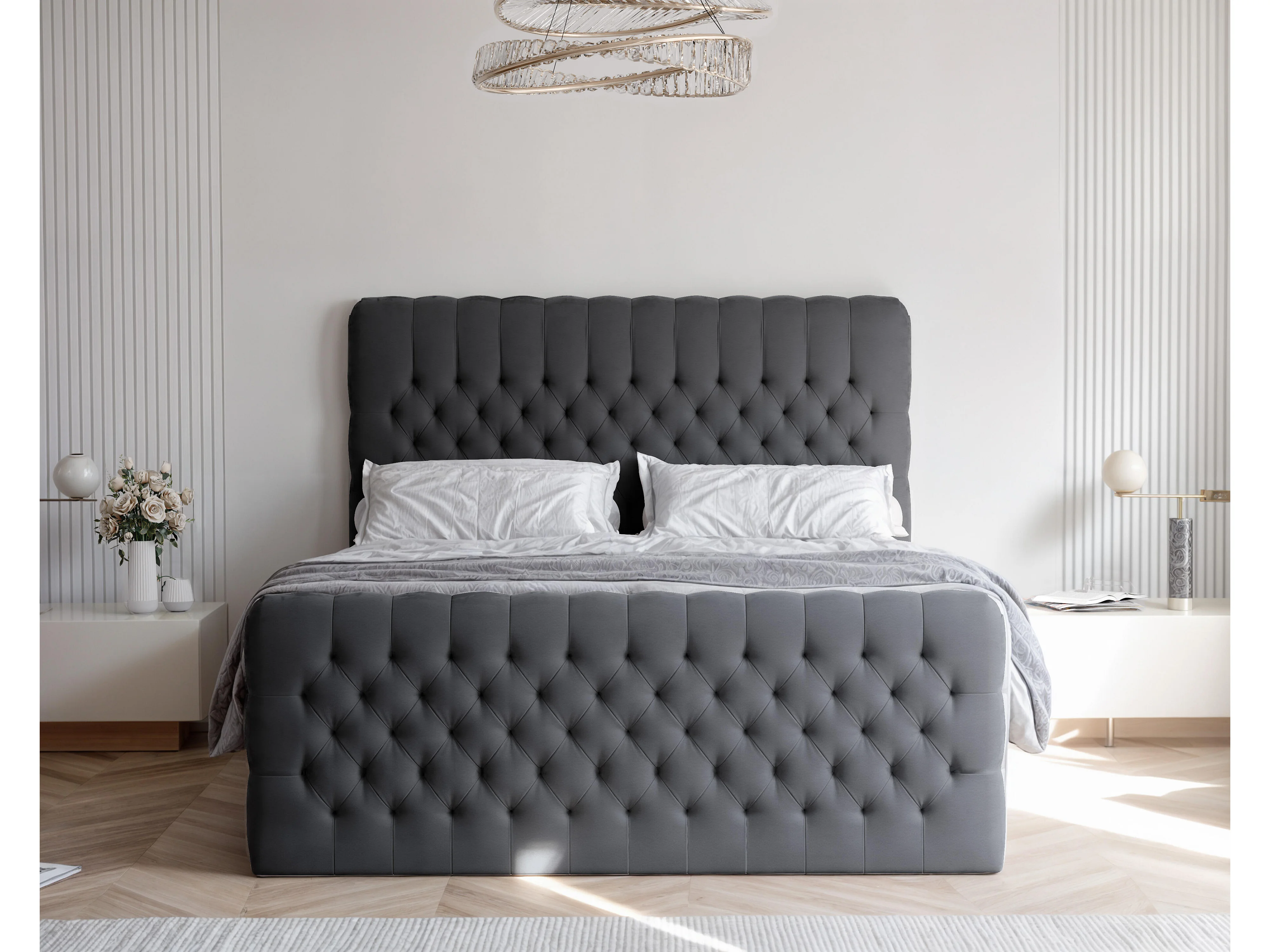 Lit continental rembourré avec matelas, gris anthracite - 200x200
