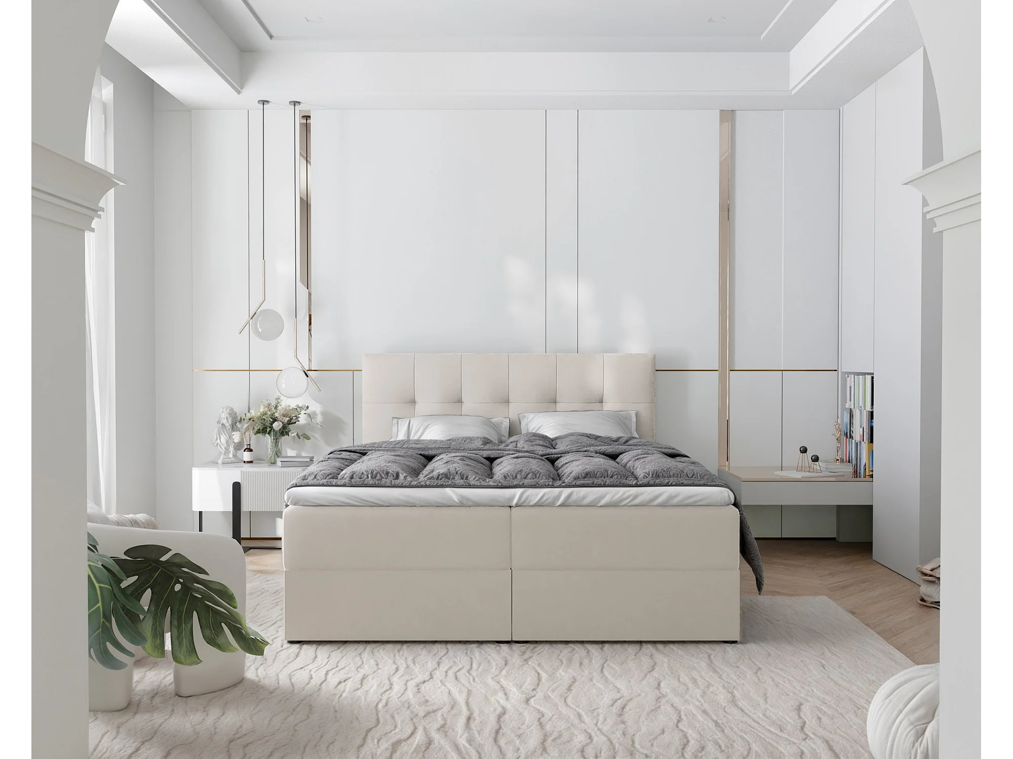 Lit continental rembourré avec surmatelas, beige - 180x200 - RENZO