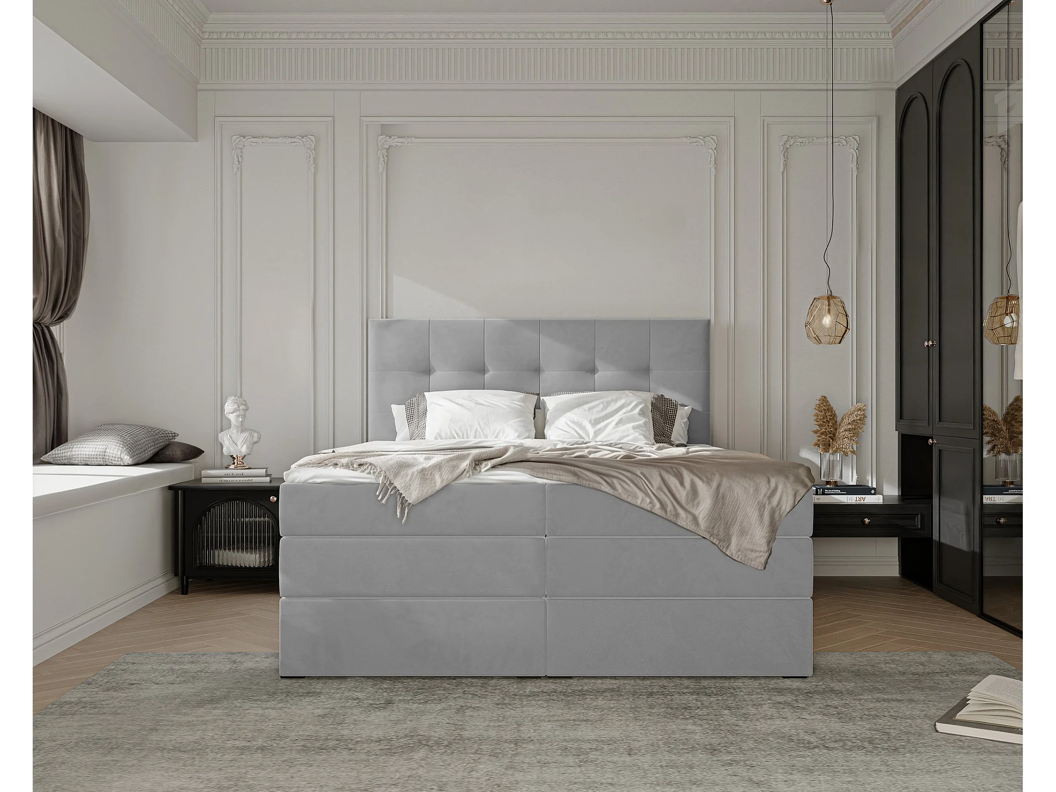 Lit continental rembourré avec surmatelas, gris - 200x200 - AZARIO