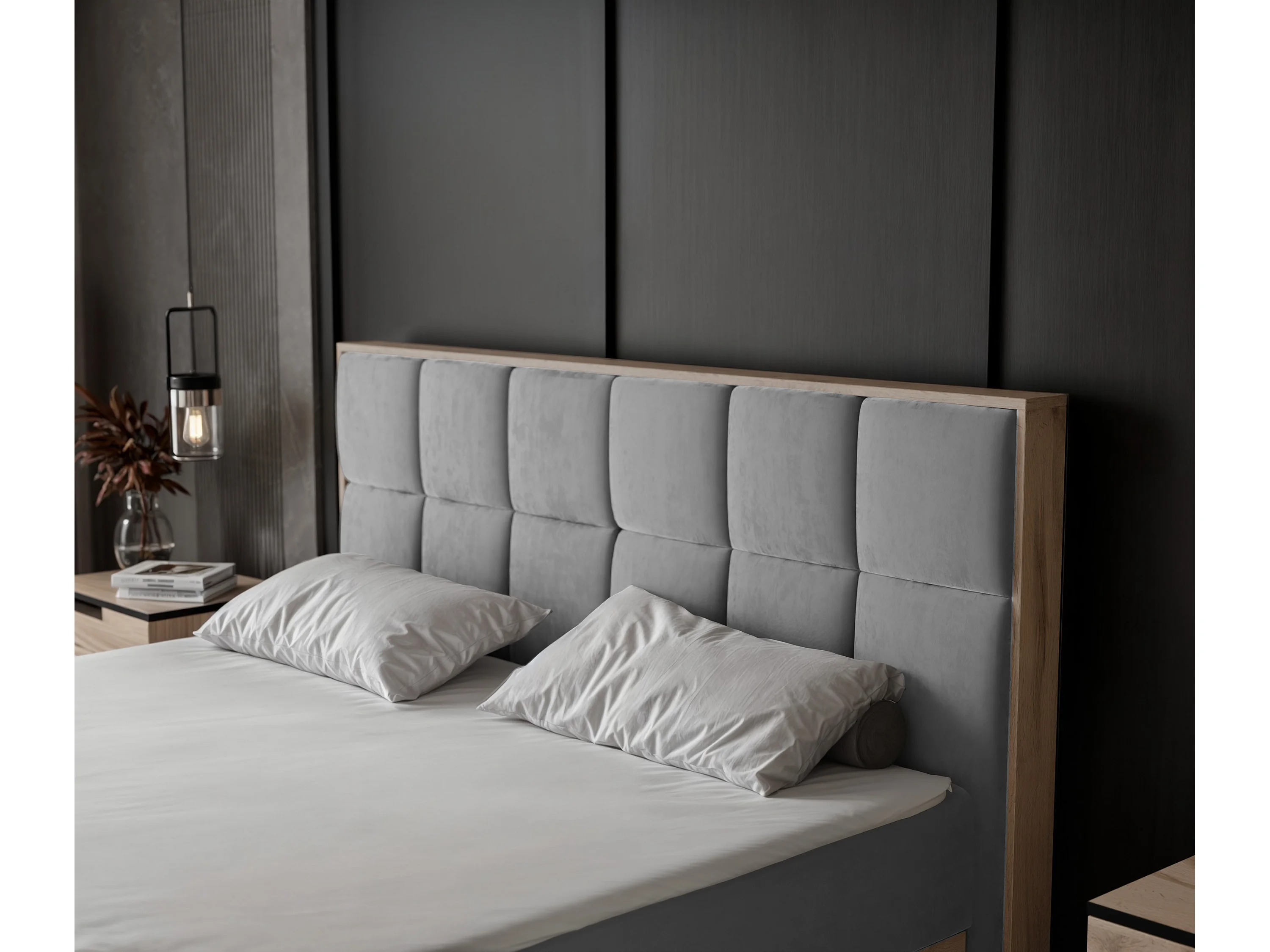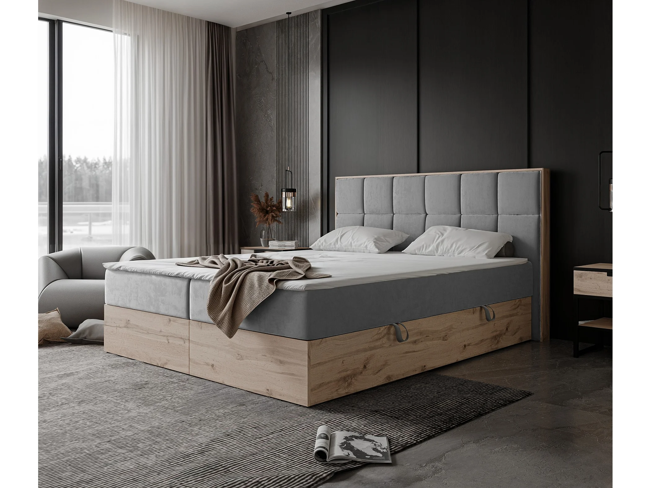 Lit continental rembourré avec surmatelas, gris - 200x200 - LAVIO II