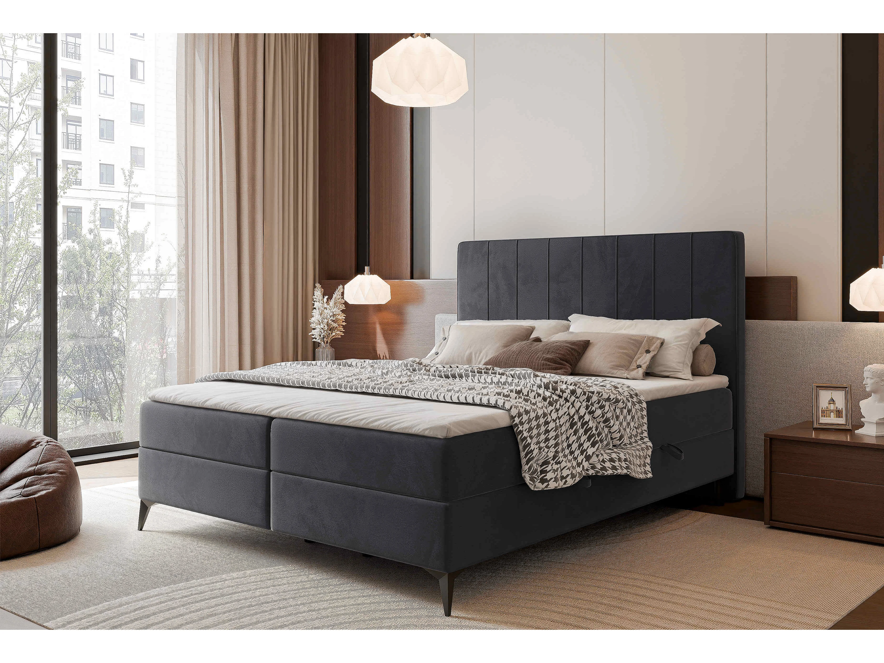 Lit continental rembourré avec surmatelas, gris anthracite - 140x200 - VERA