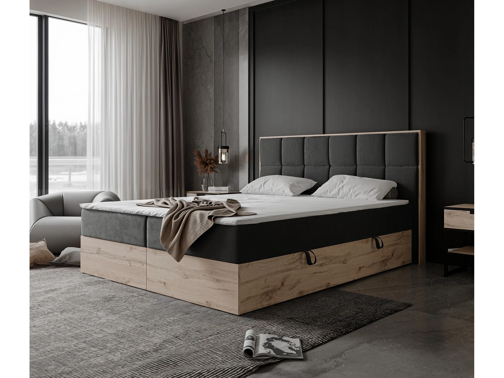 Lit continental rembourré avec surmatelas, gris anthracite - 200x200 - LAVIO II