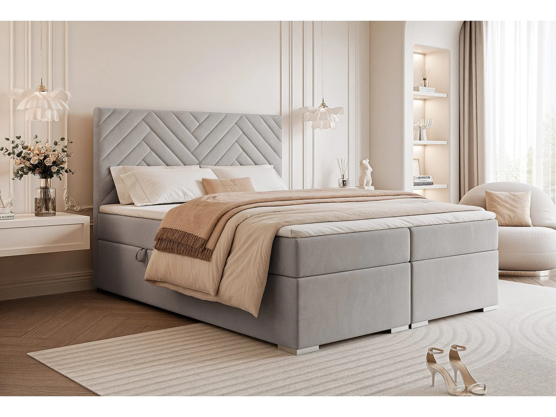 Lit continental rembourré avec surmatelas, gris clair - 140x200 - NEREA