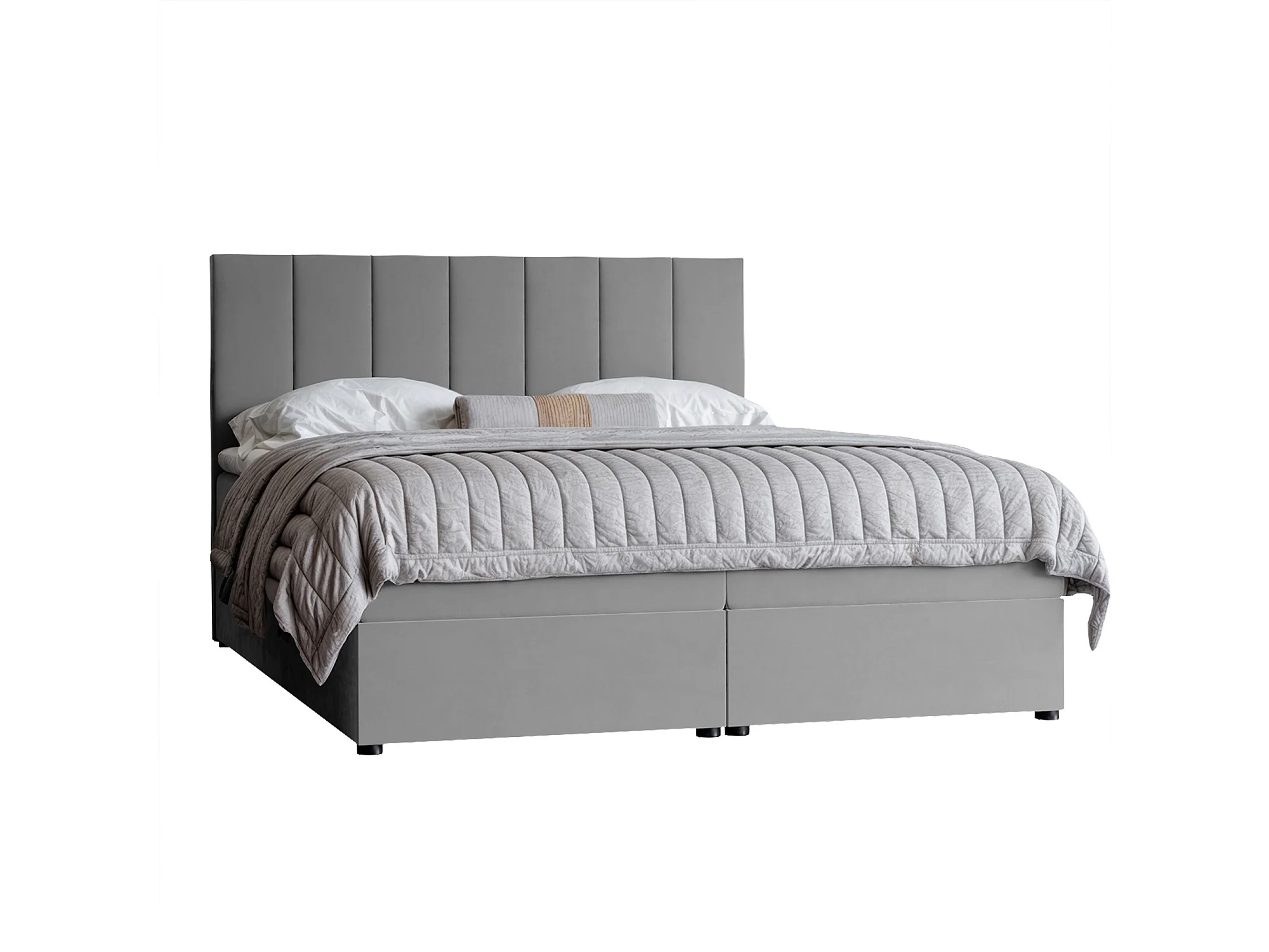 Lit continental rembourré avec surmatelas, gris clair - 160x200 - ZELTO