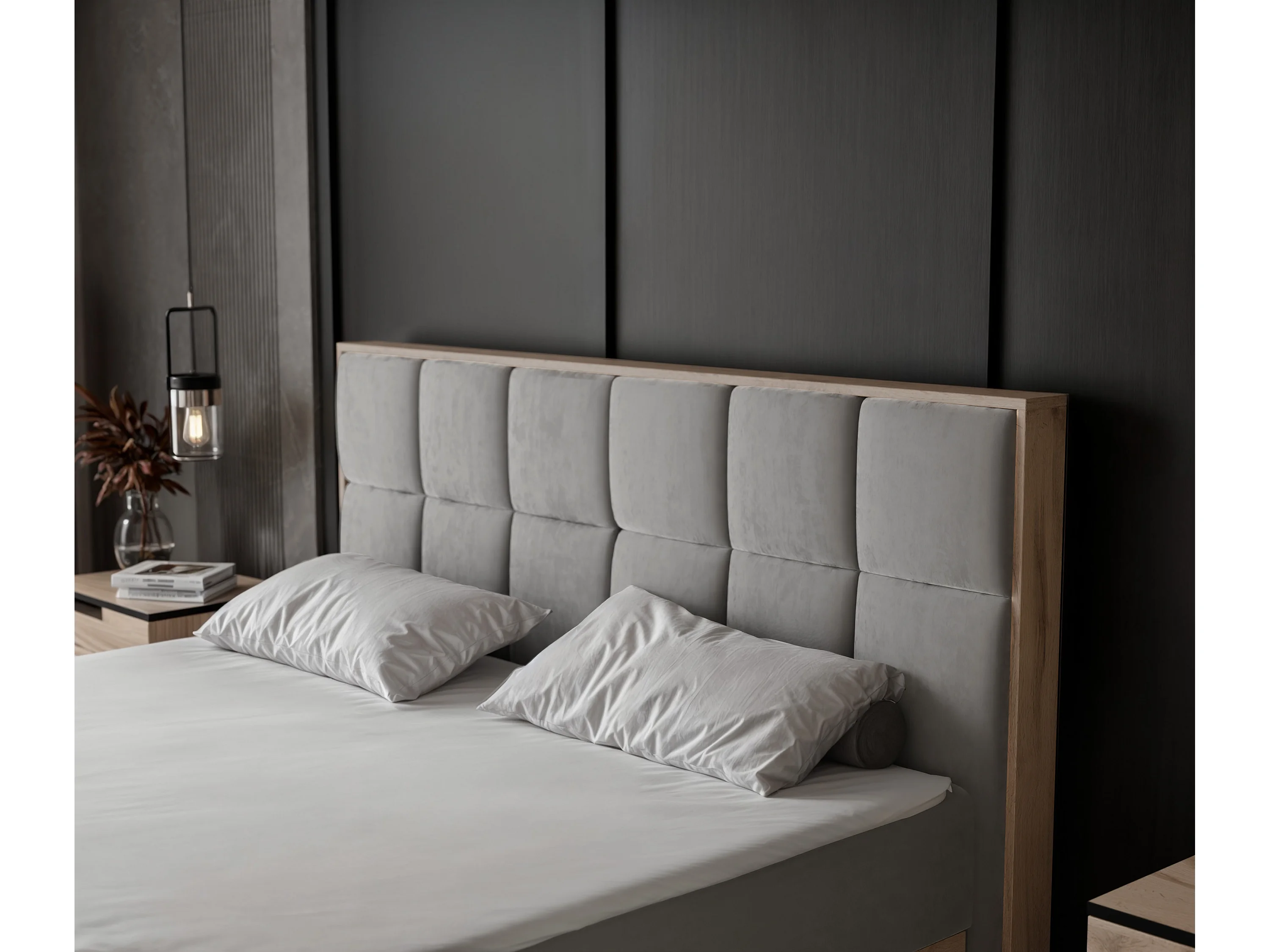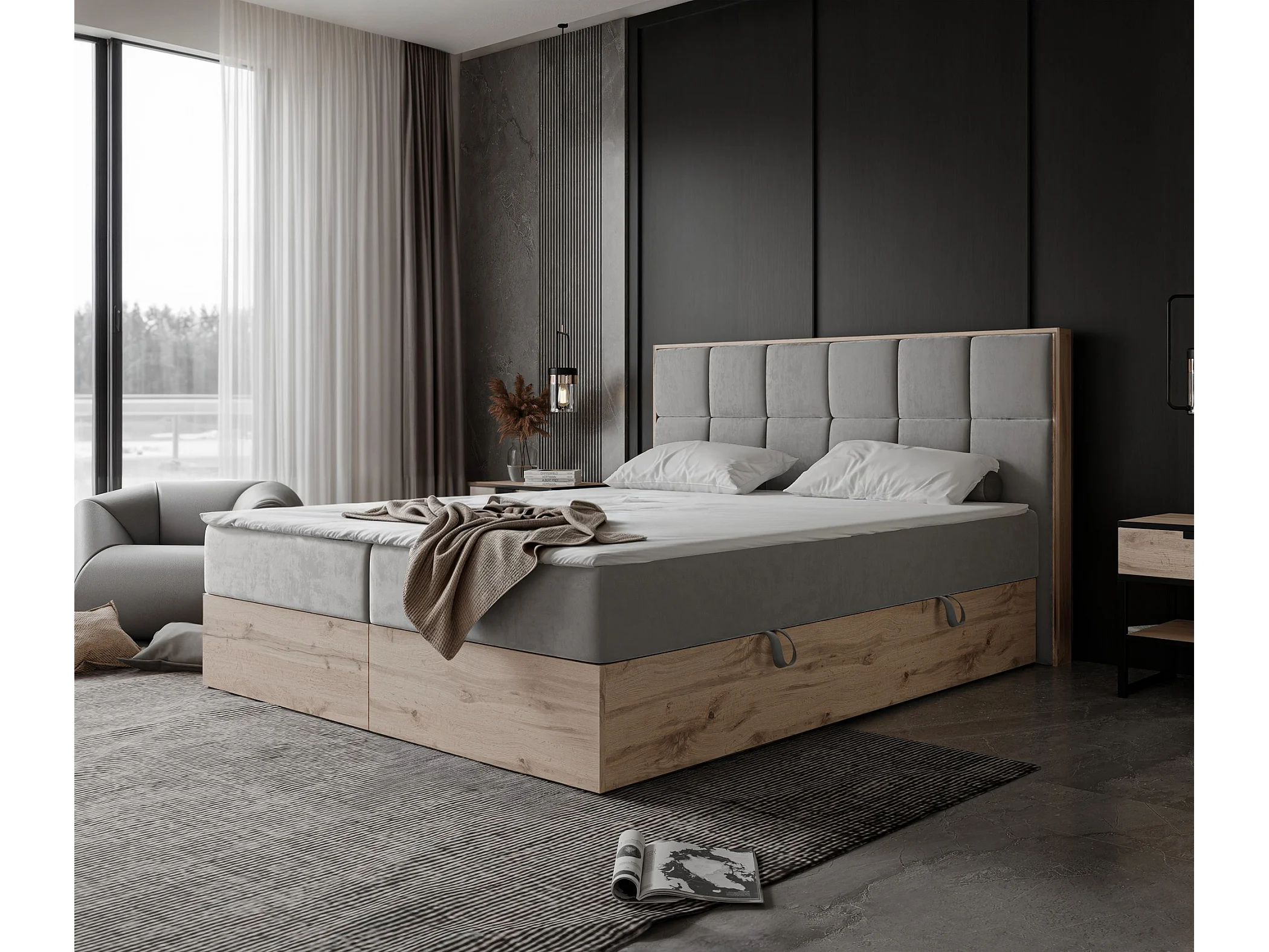 Lit continental rembourré avec surmatelas, gris clair - 200x200 - LAVIO II