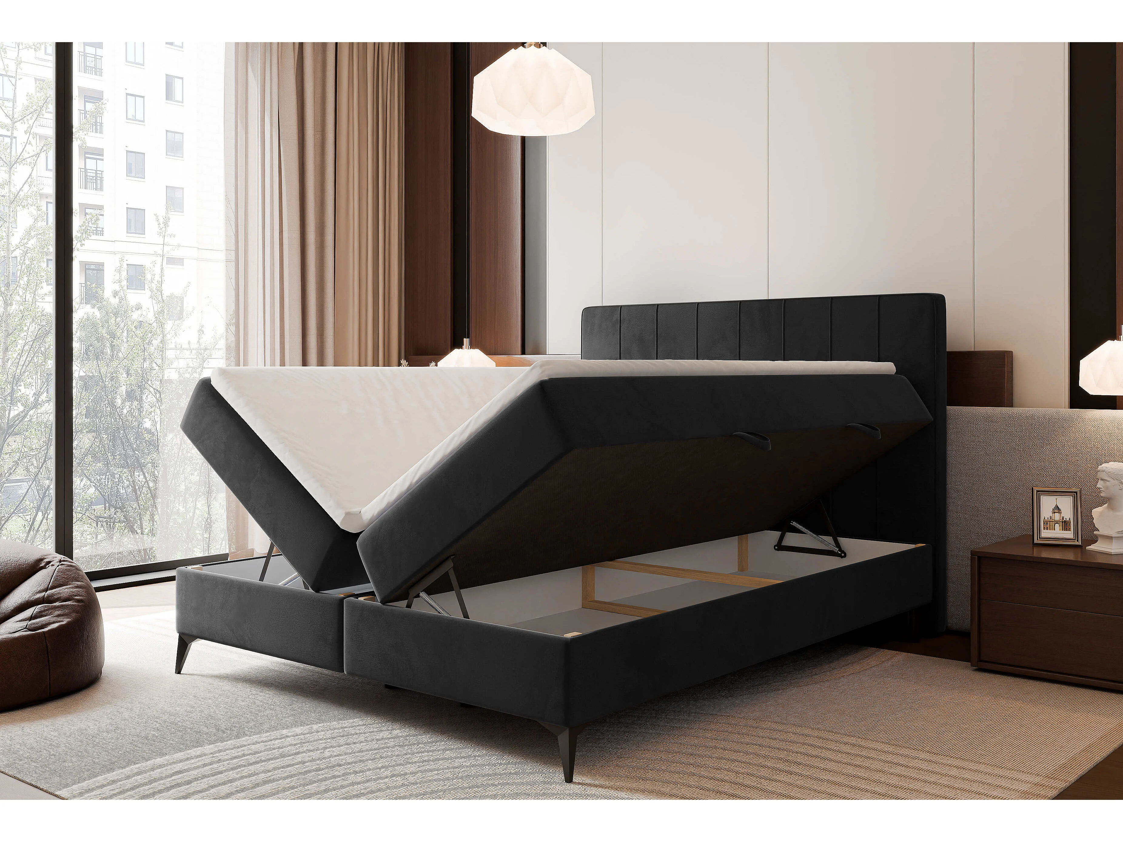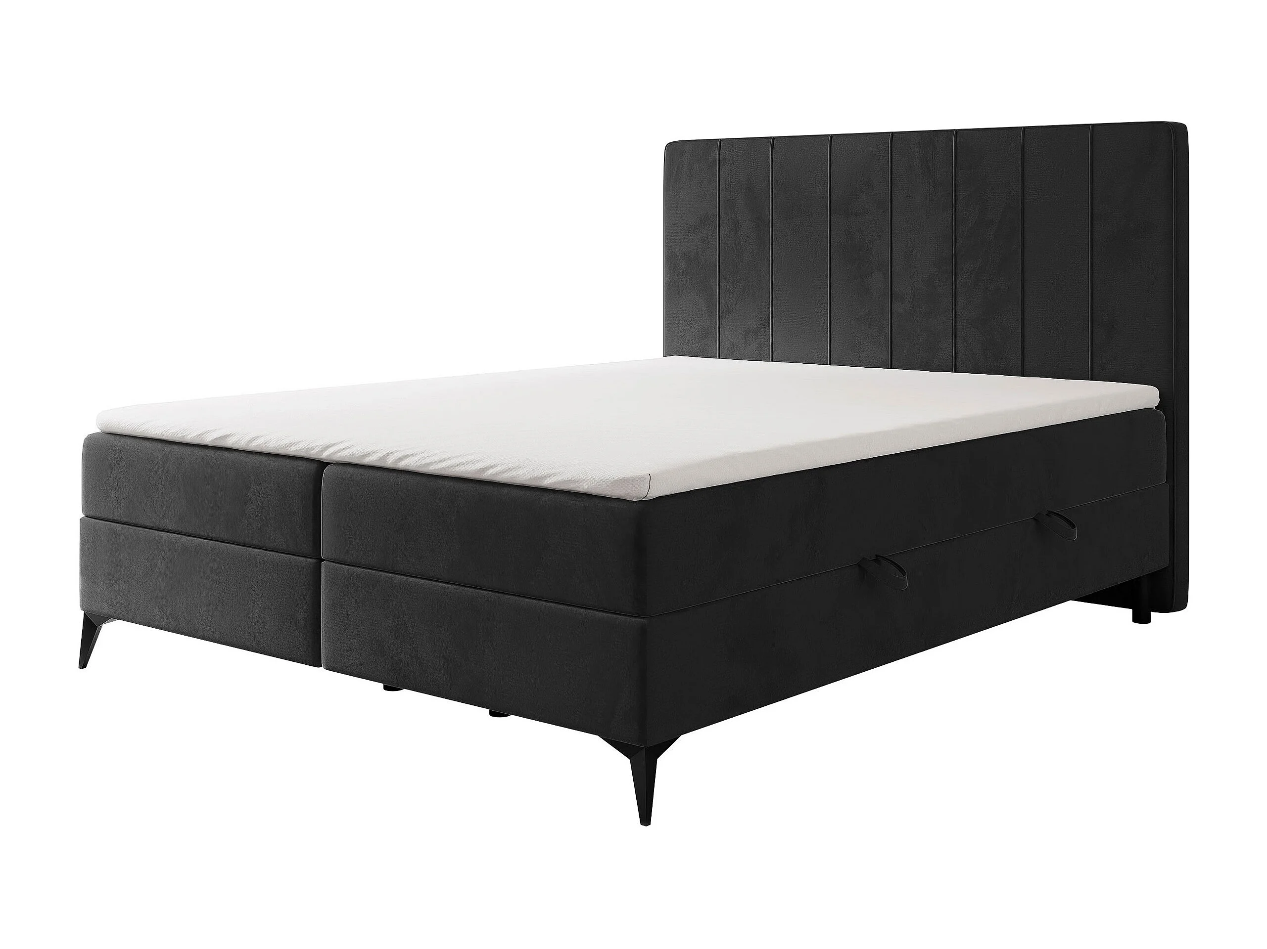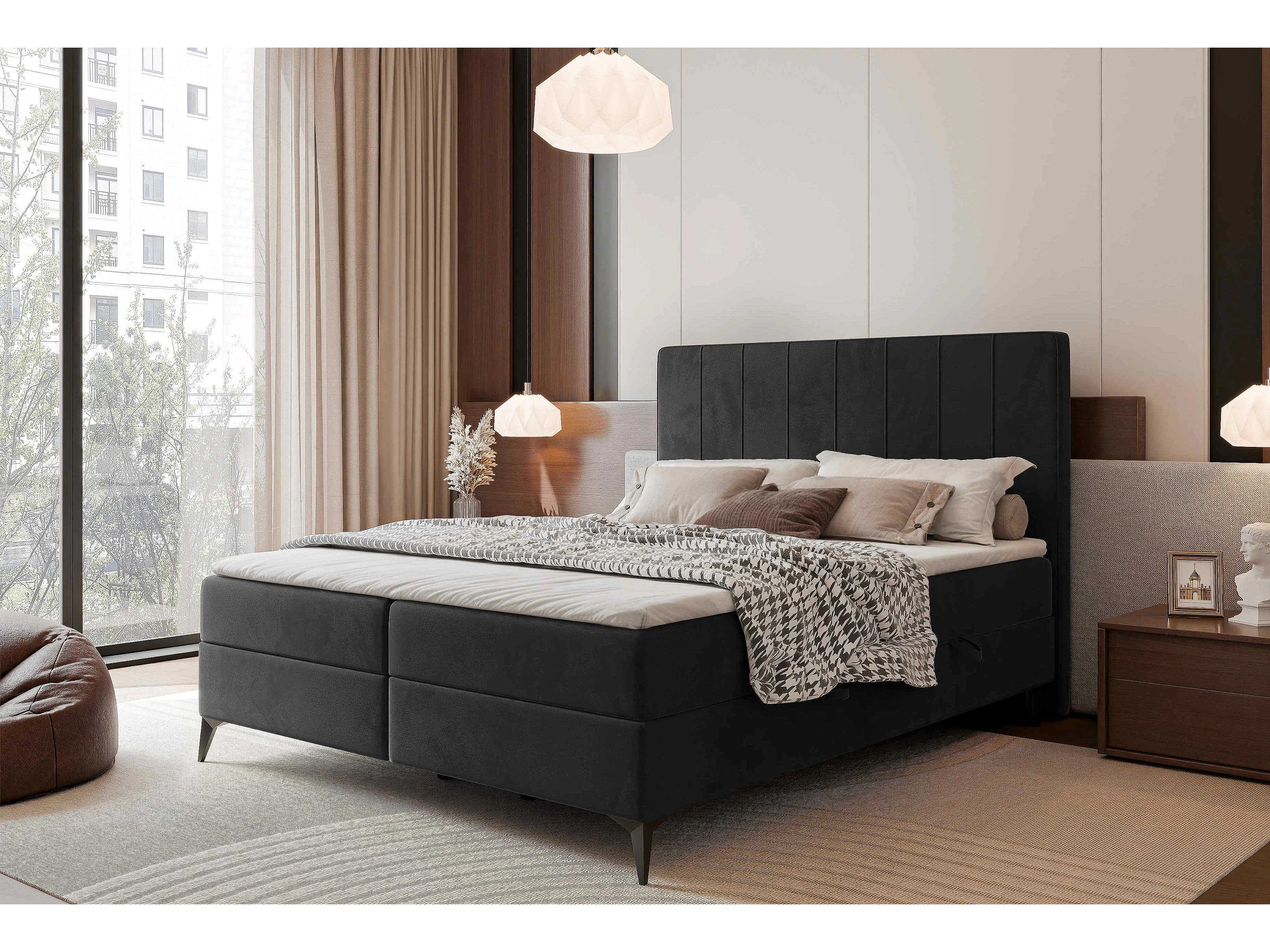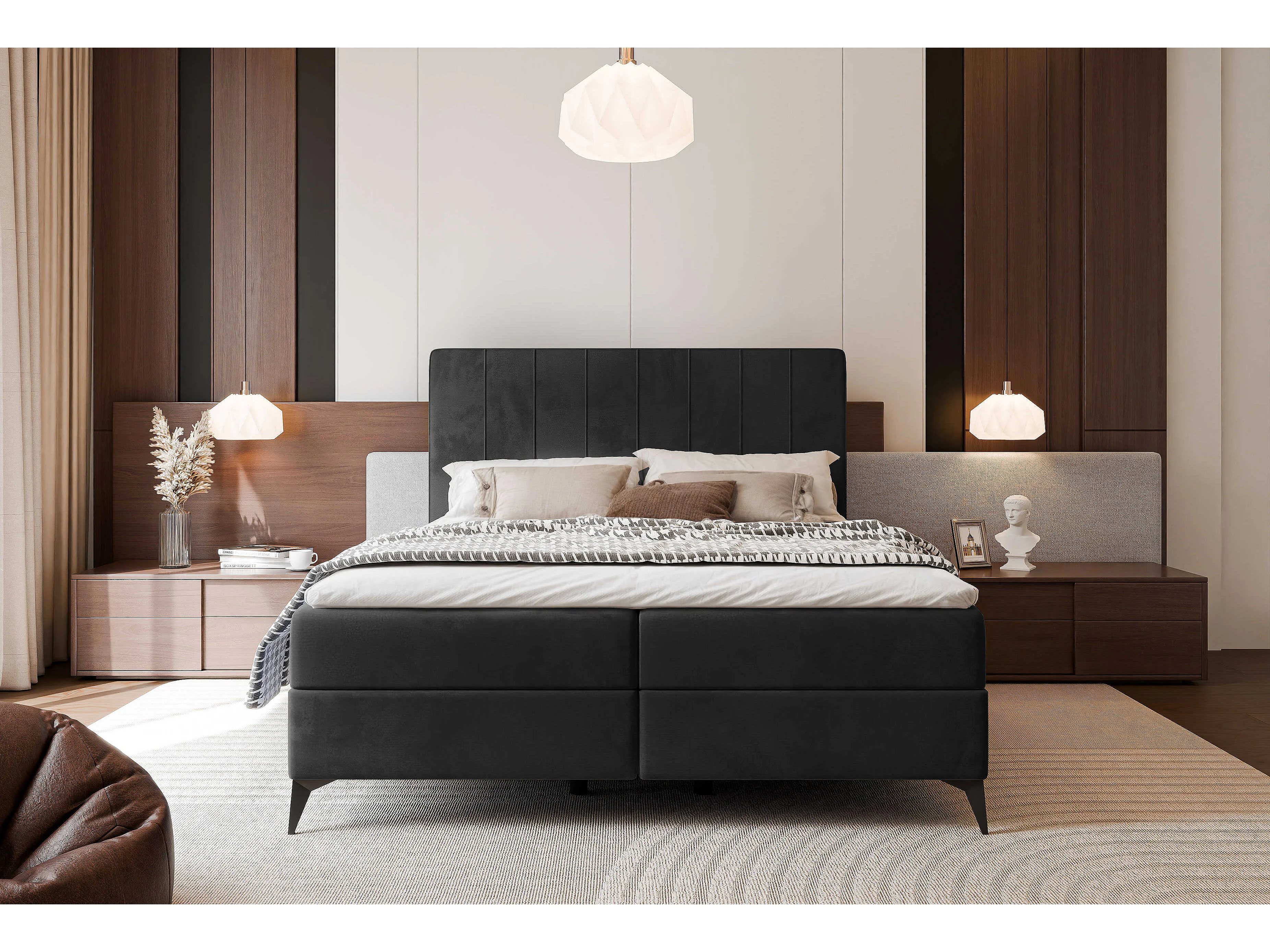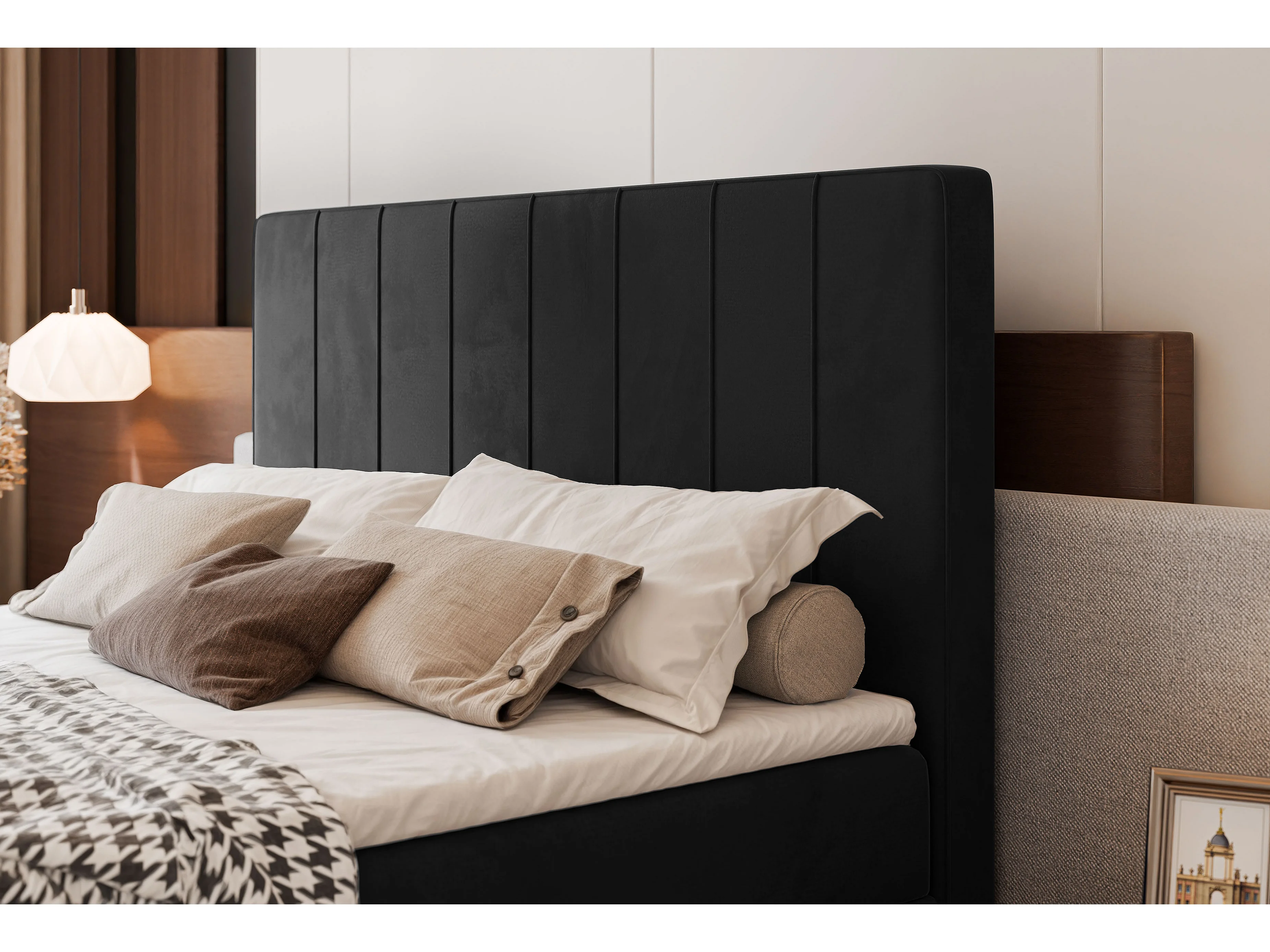 Lit continental rembourré avec surmatelas, noir - 140x200 - VERA