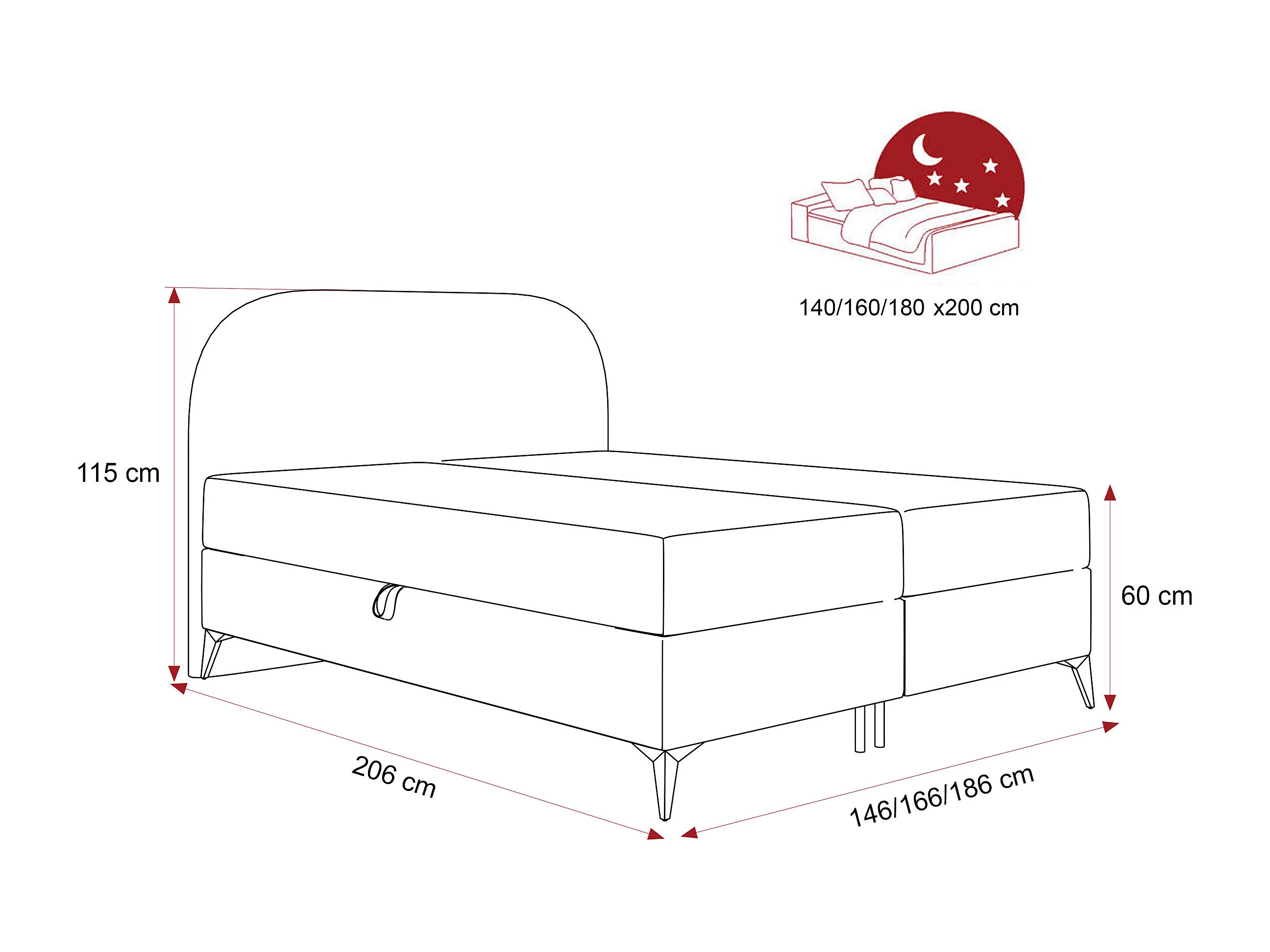 Lit continental rembourré sur pieds avec surmatelas, crème- 180x200 - NOELIA