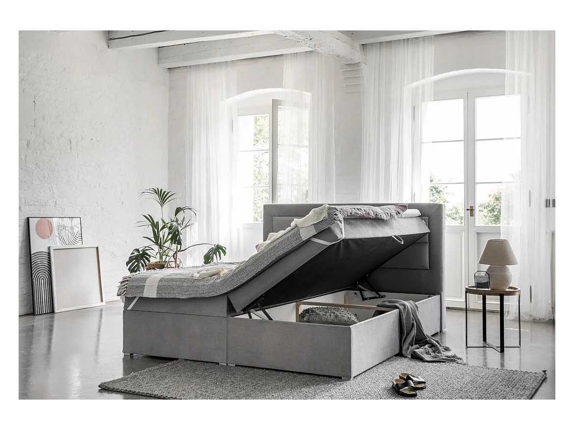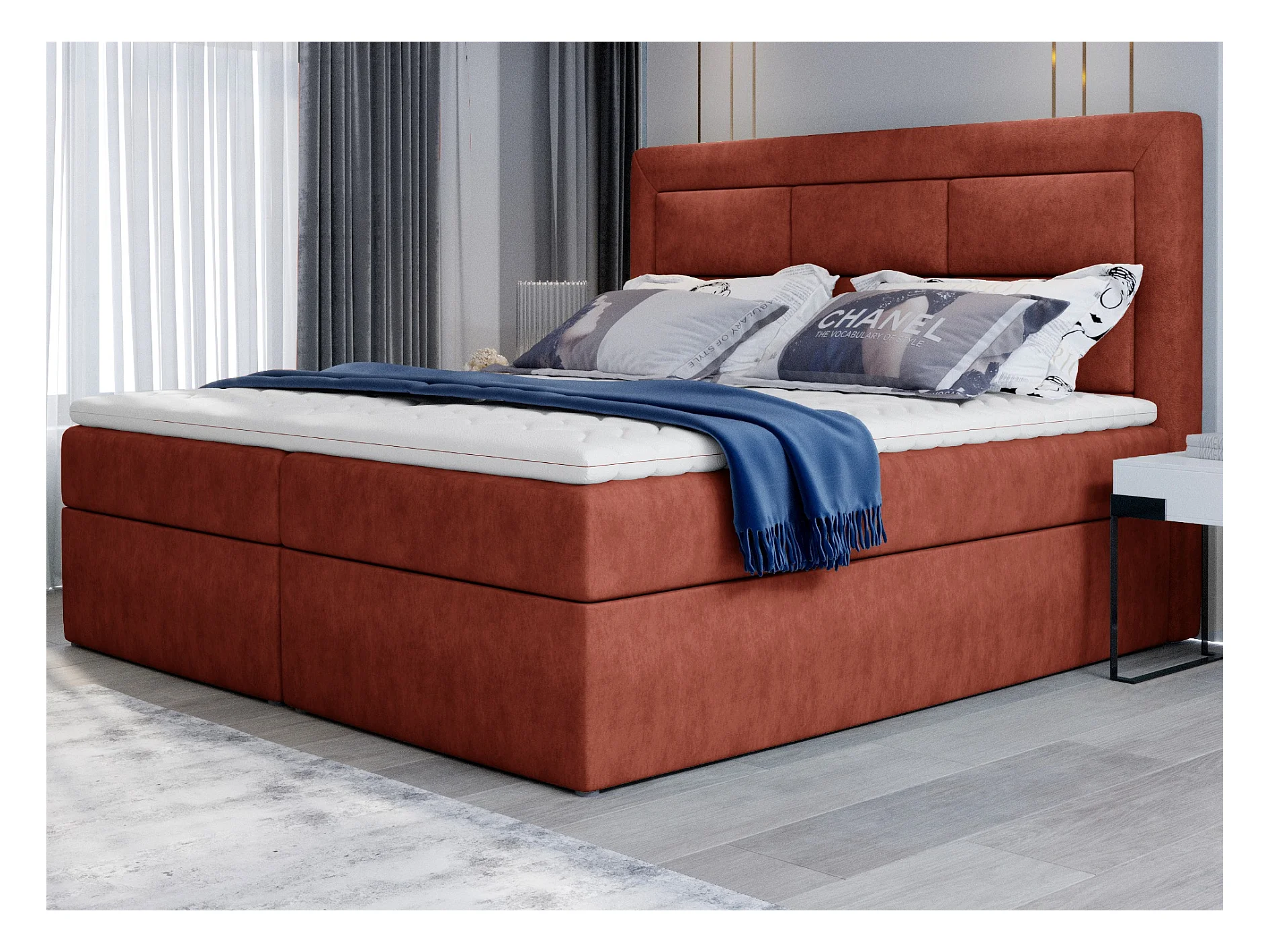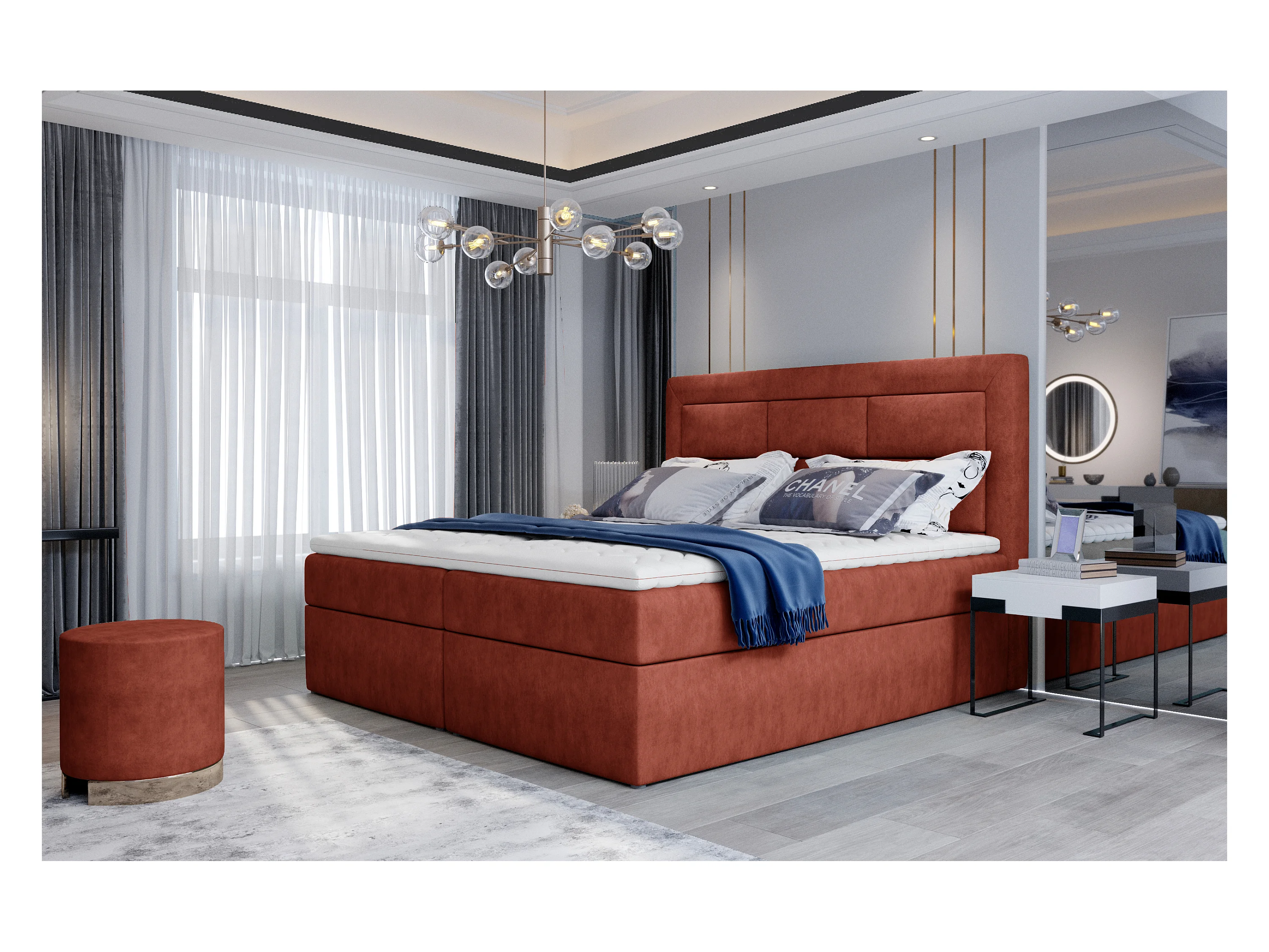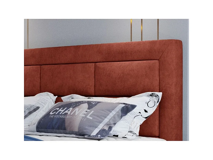 Lit continental tissu rouge tomette Balore-Couchage 180x200 cm