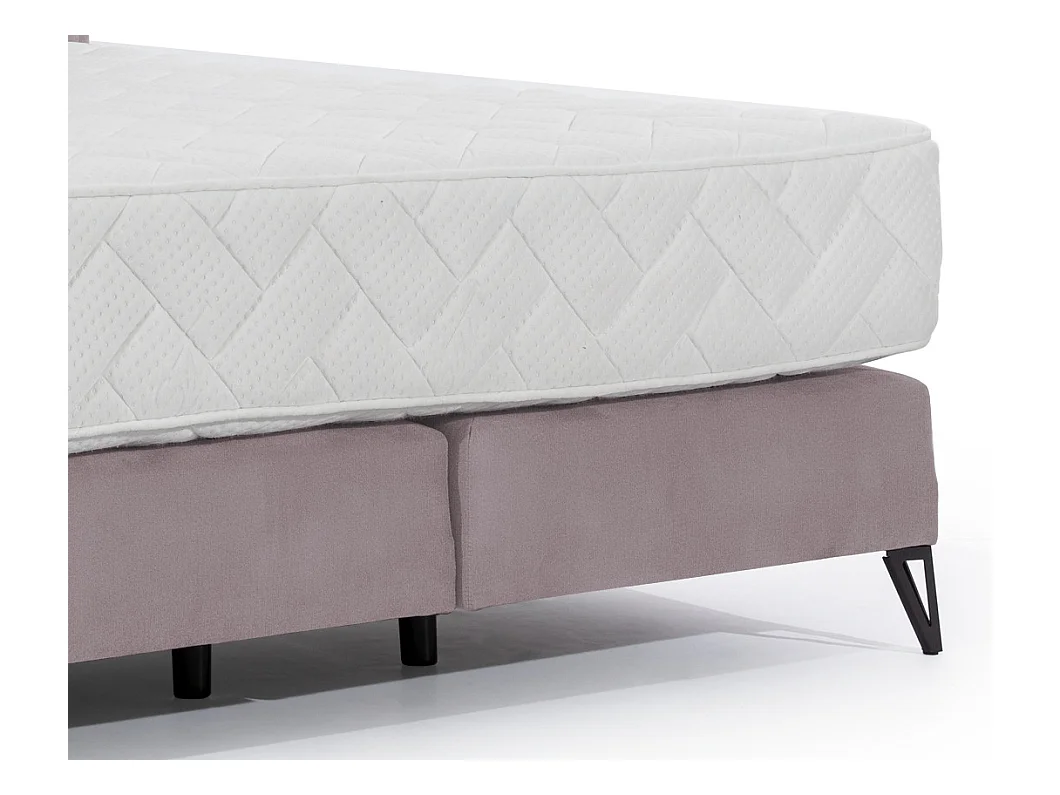 Lit continental velours rose balai Tiempo avec matelas 30cm en latex et pied métal noir-140x200