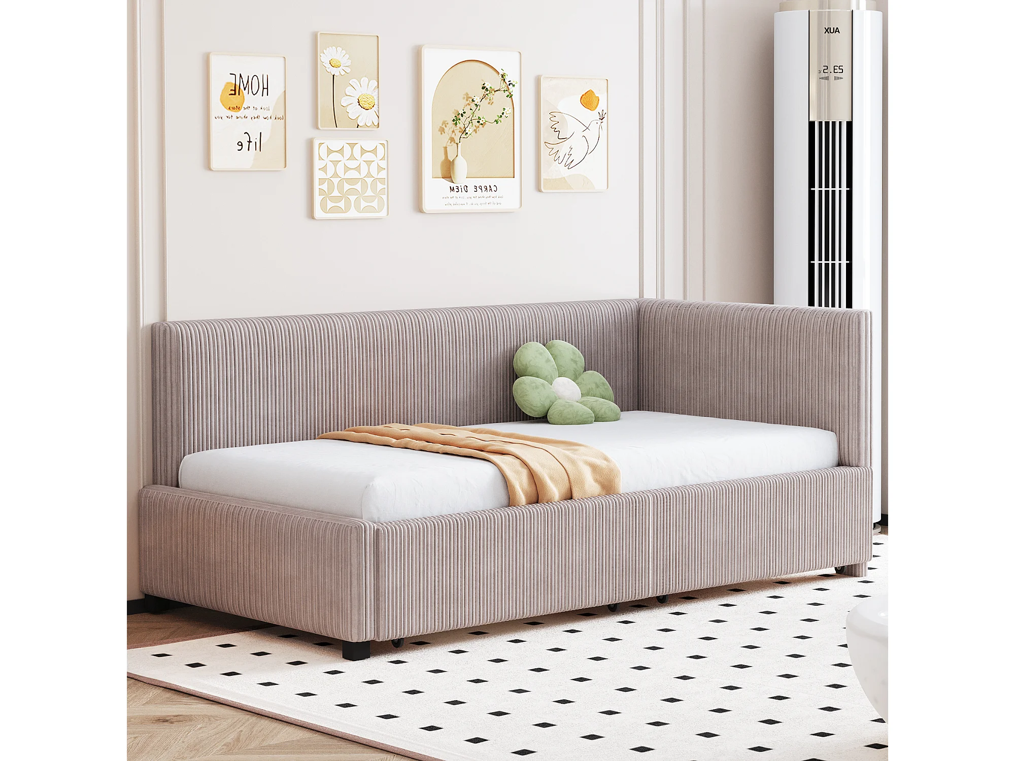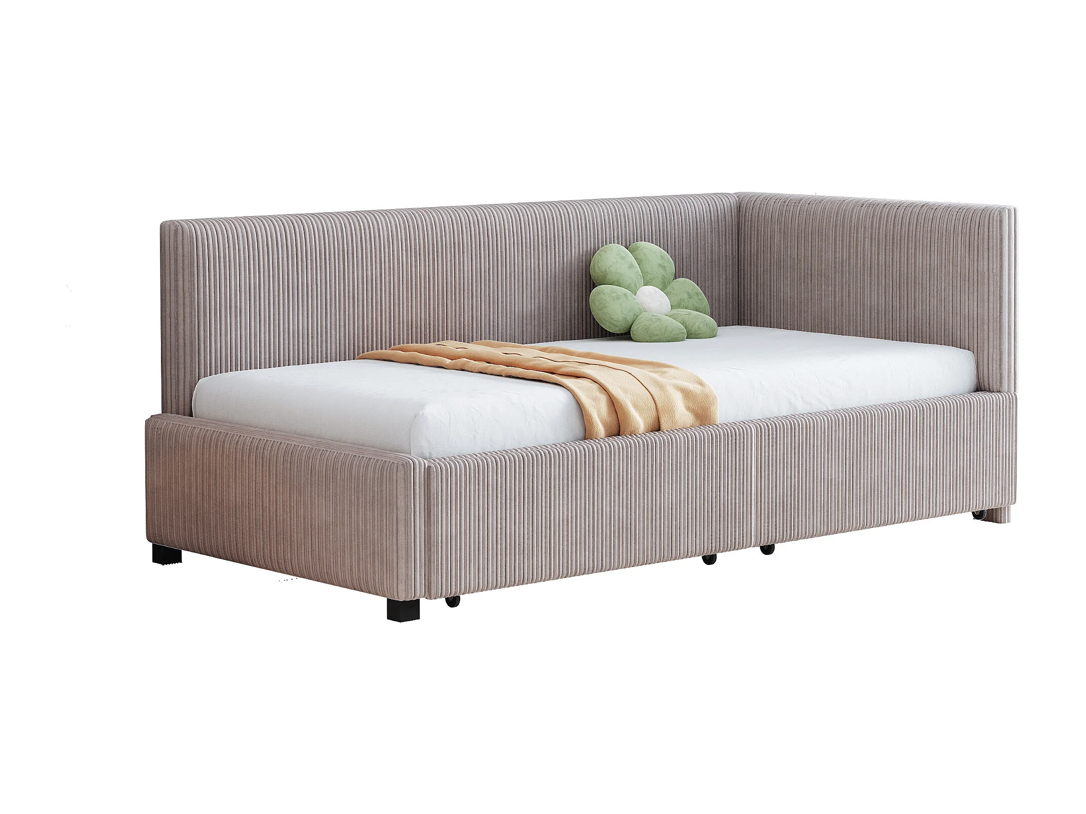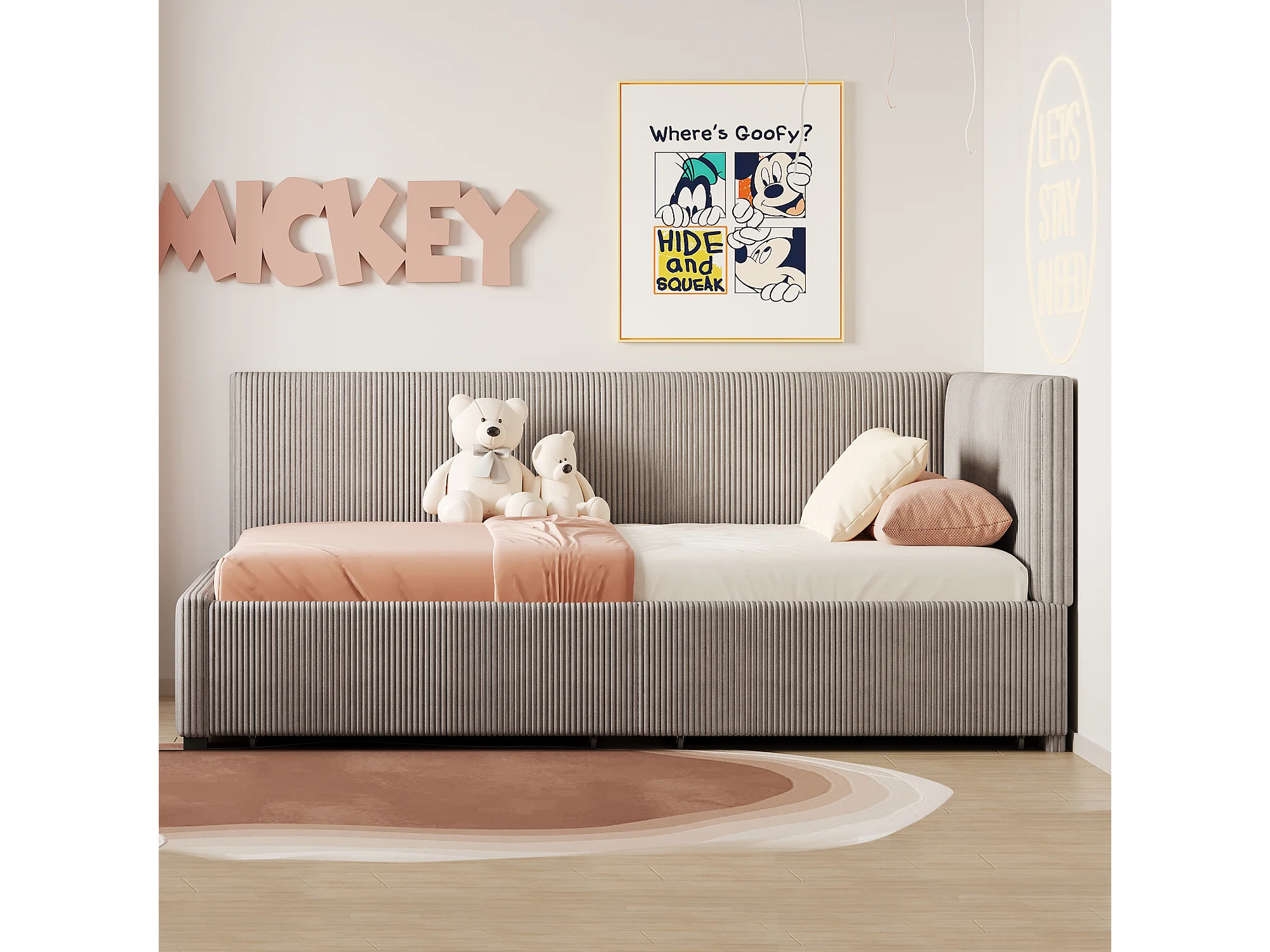 Lit convertible 90×200 cm en velours gris avec 2 tiroirs de rangement et sommier à lattes