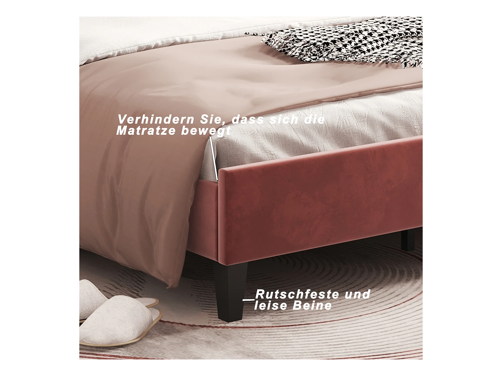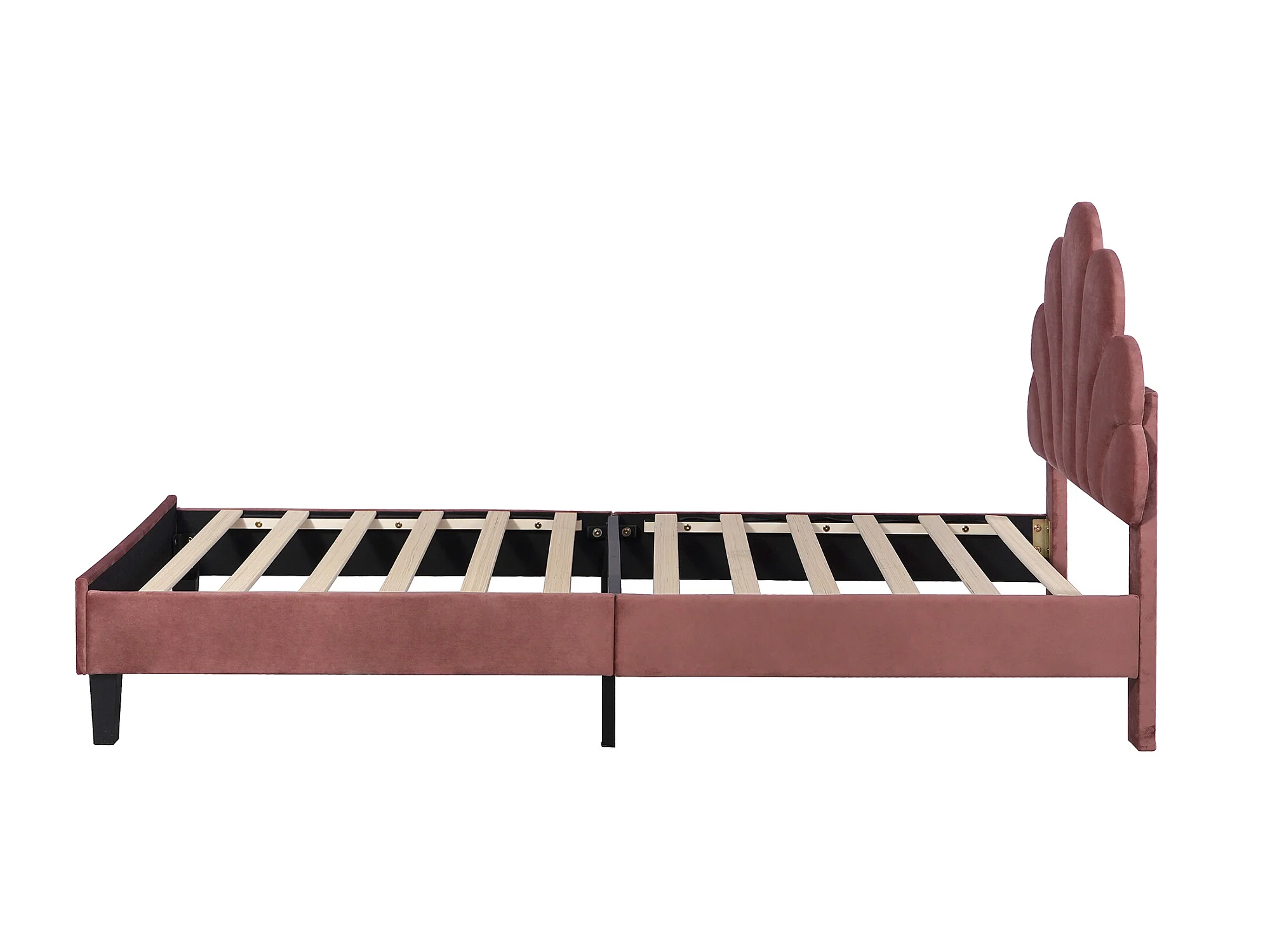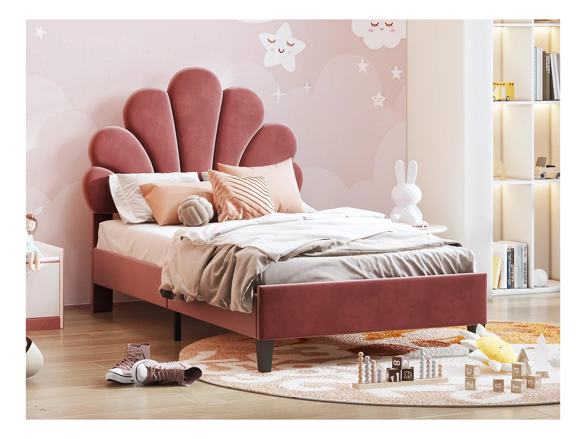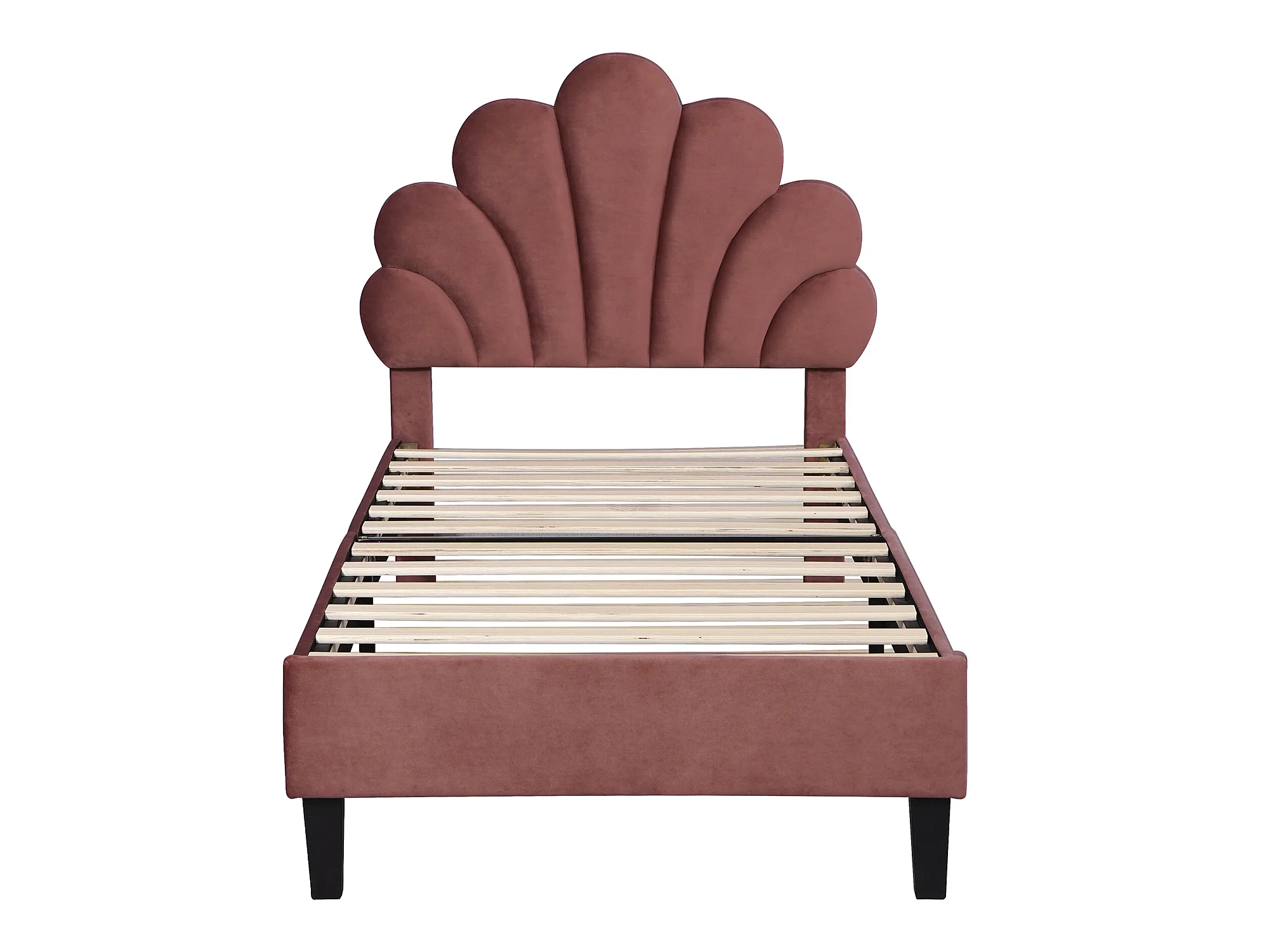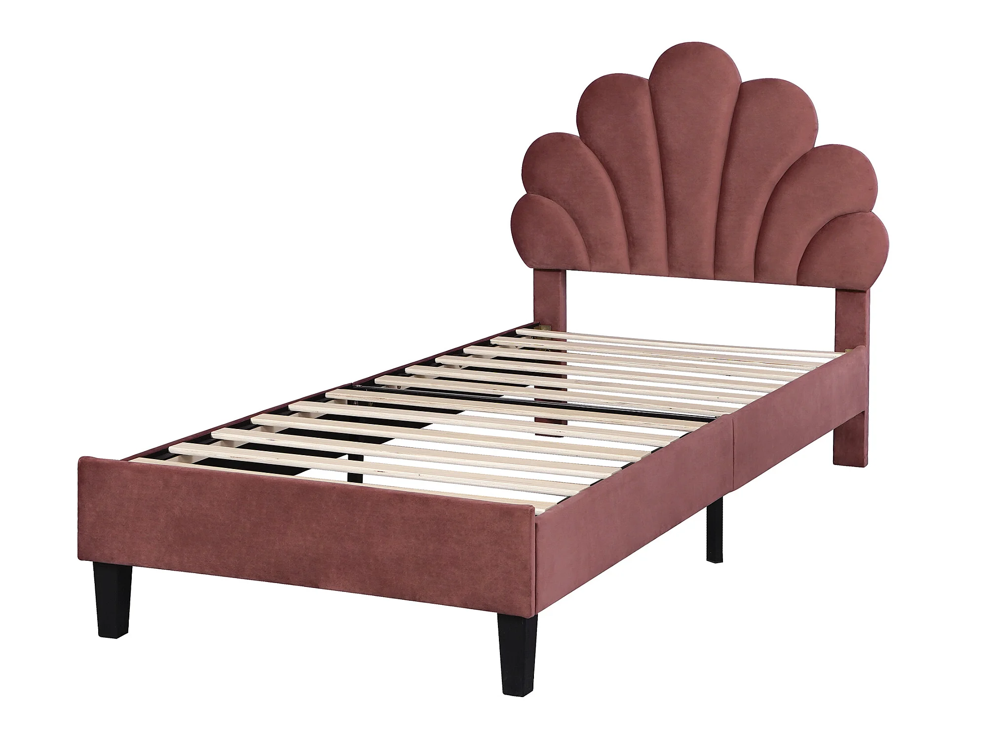 Lit coquillage avec tête de lit 90 x 200 cm en velours, sommier à lattes inclus, rouge