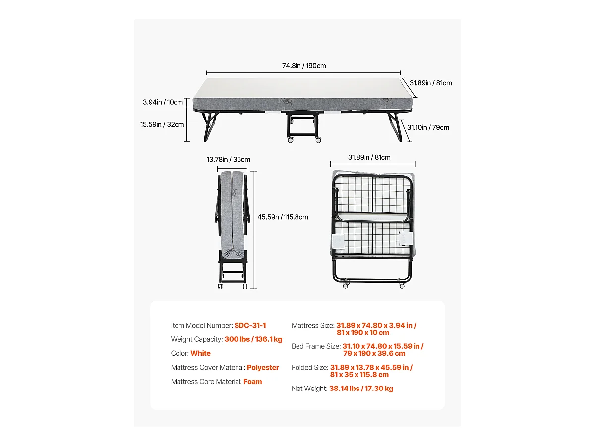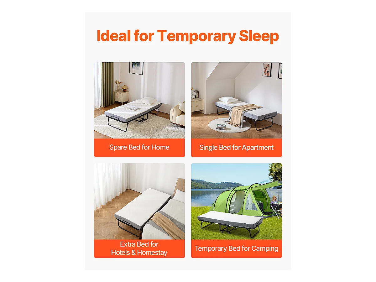Lit d'Appoint SucceBuy, Lit Pliant avec Matelas en Mousse de 10 cm pour Adultes et Invités