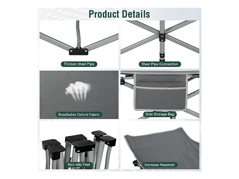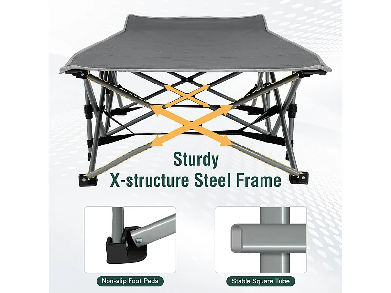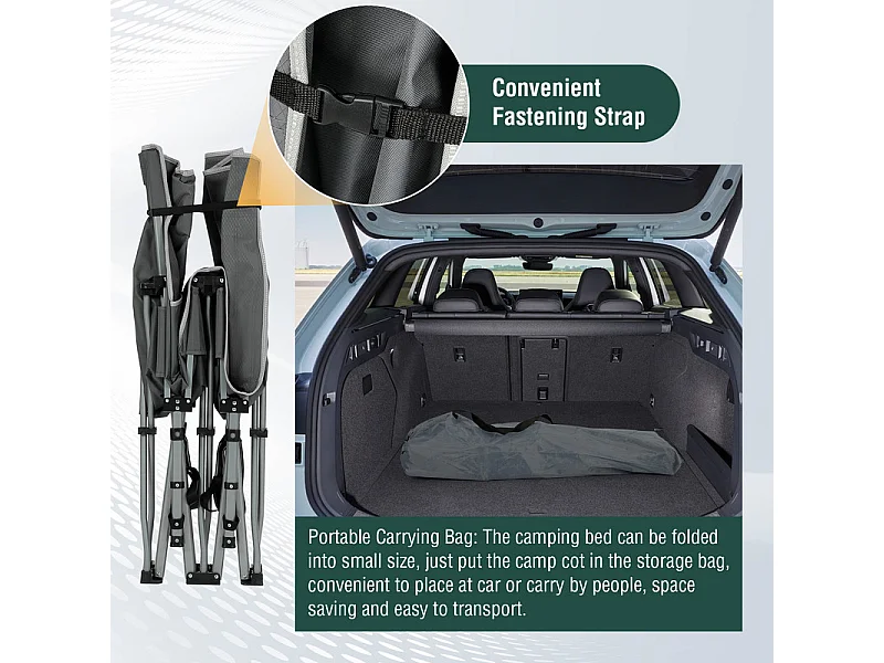 Lit de Camping Pliable en Toile Oxford à Double Couche, avec poche latérale et sac de transport, charge max 300kg, Gris, 190x72x35cm