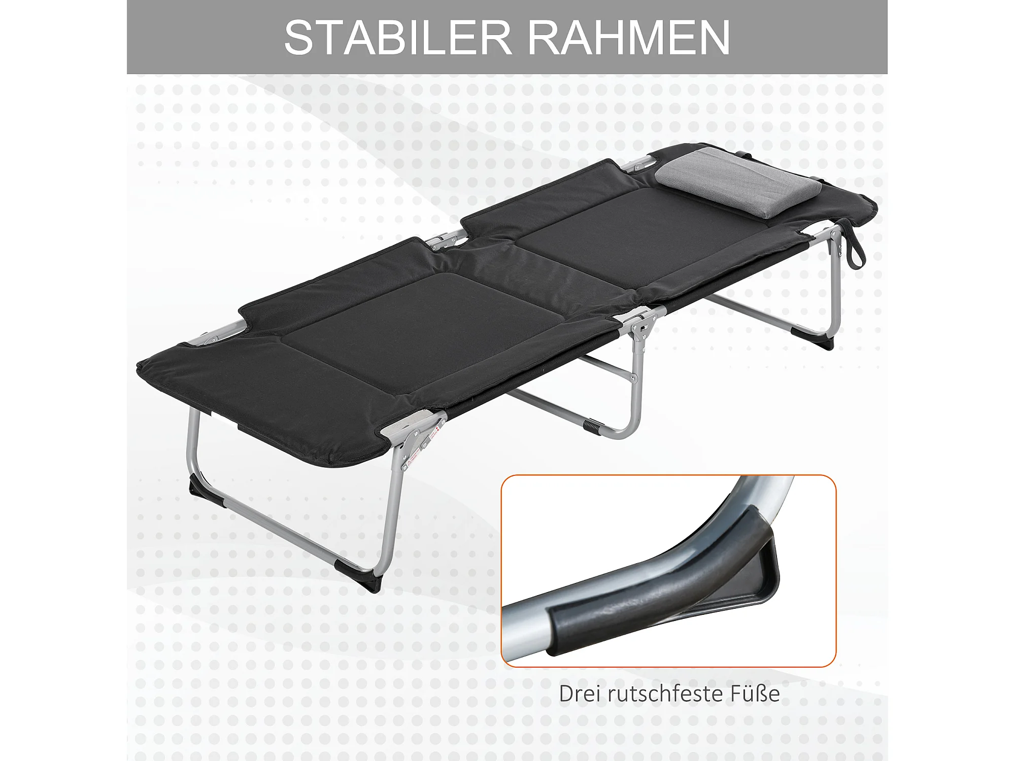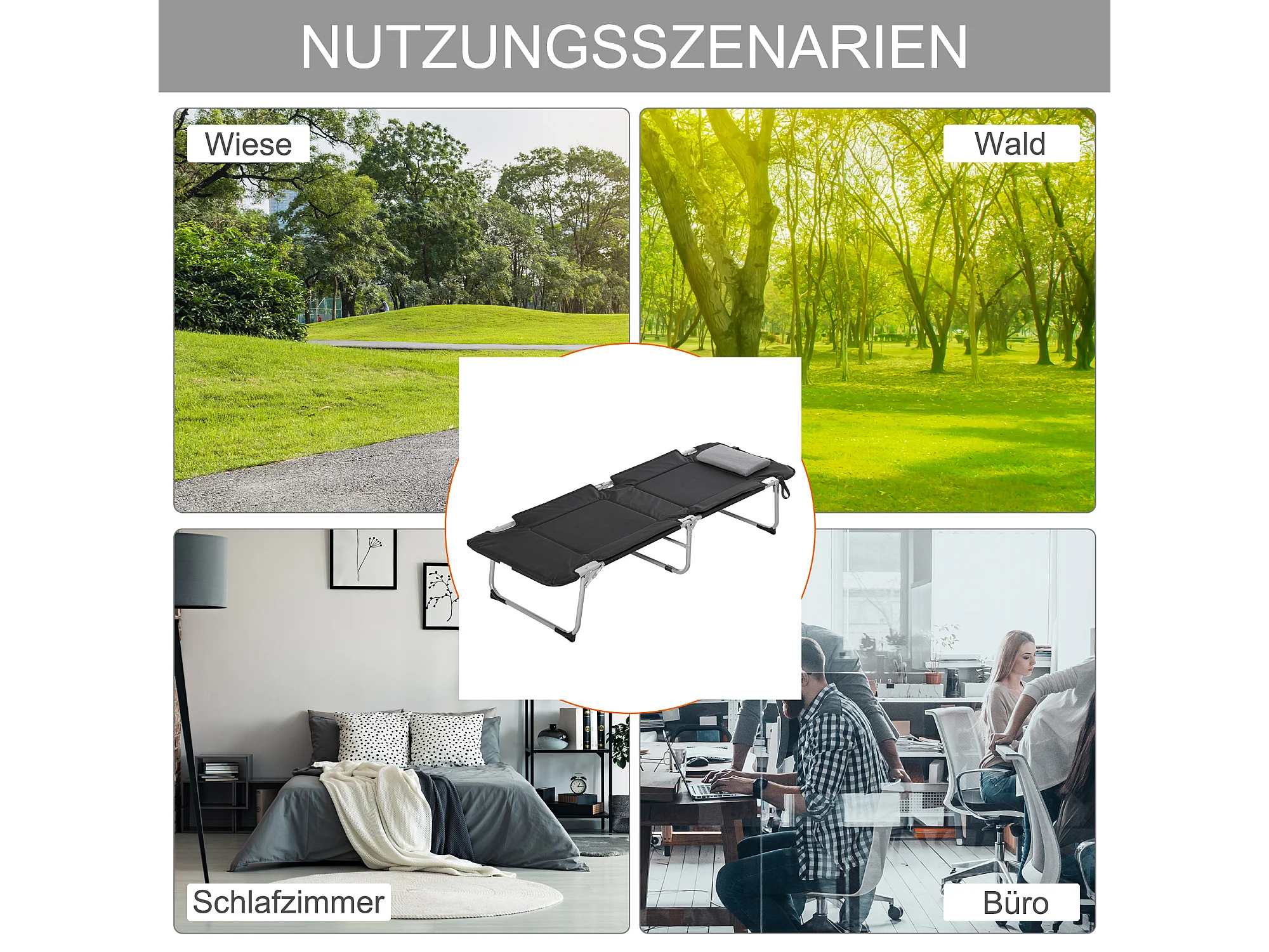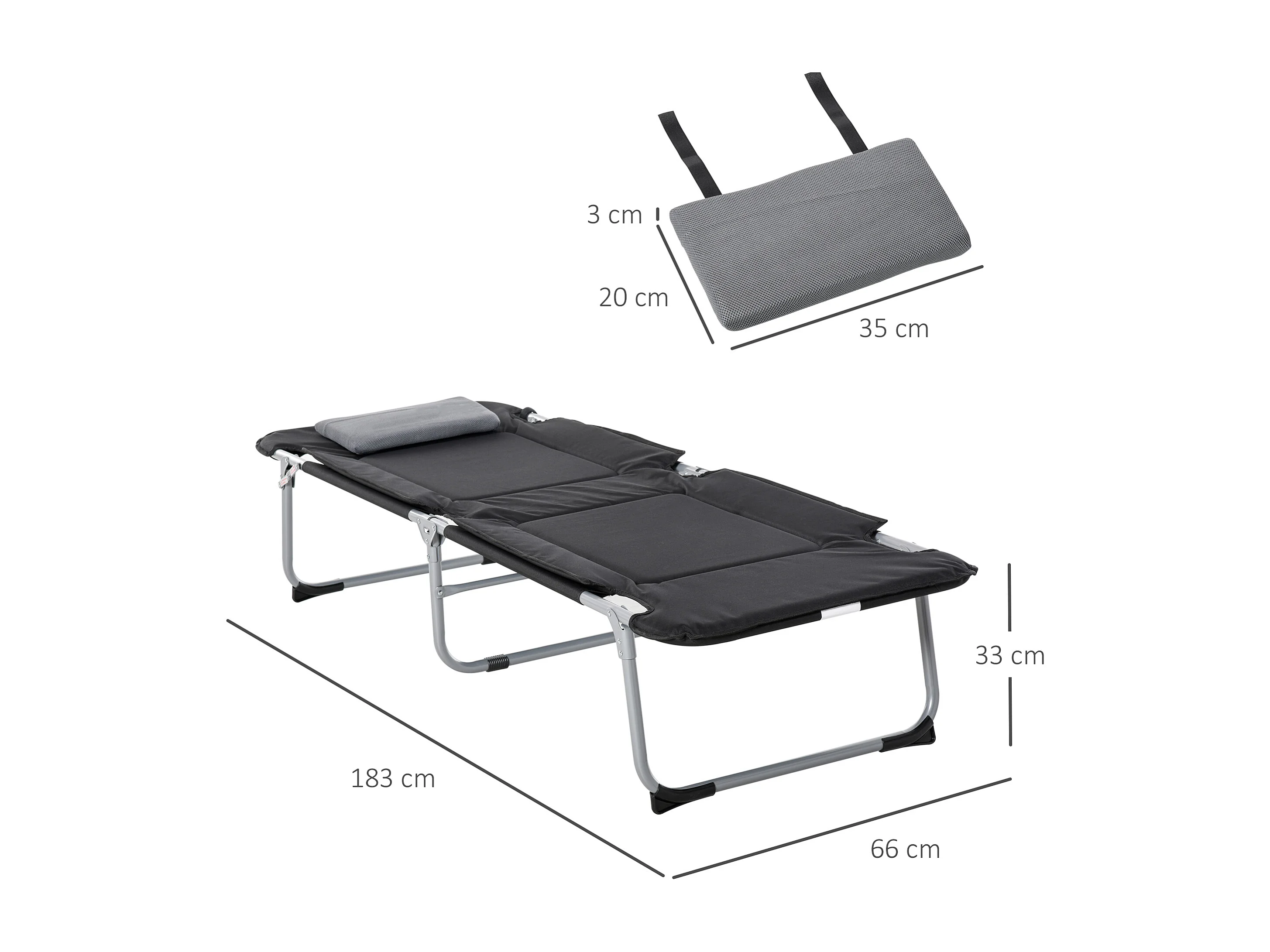 Lit de Camping Pliant avec Oreiller, Design Pratique, Tissu Oxford, Noir et Argent (183x66x33 cm)