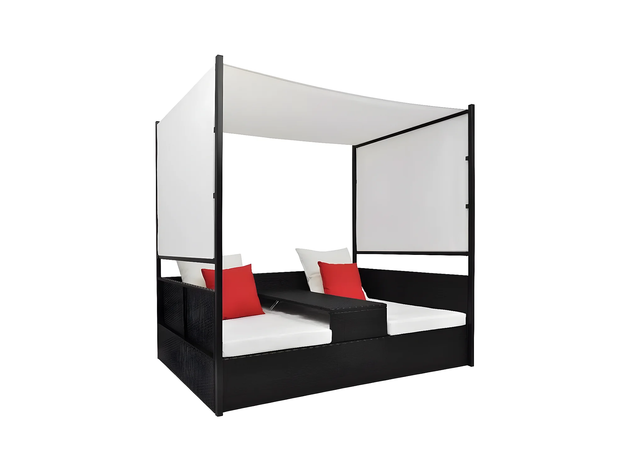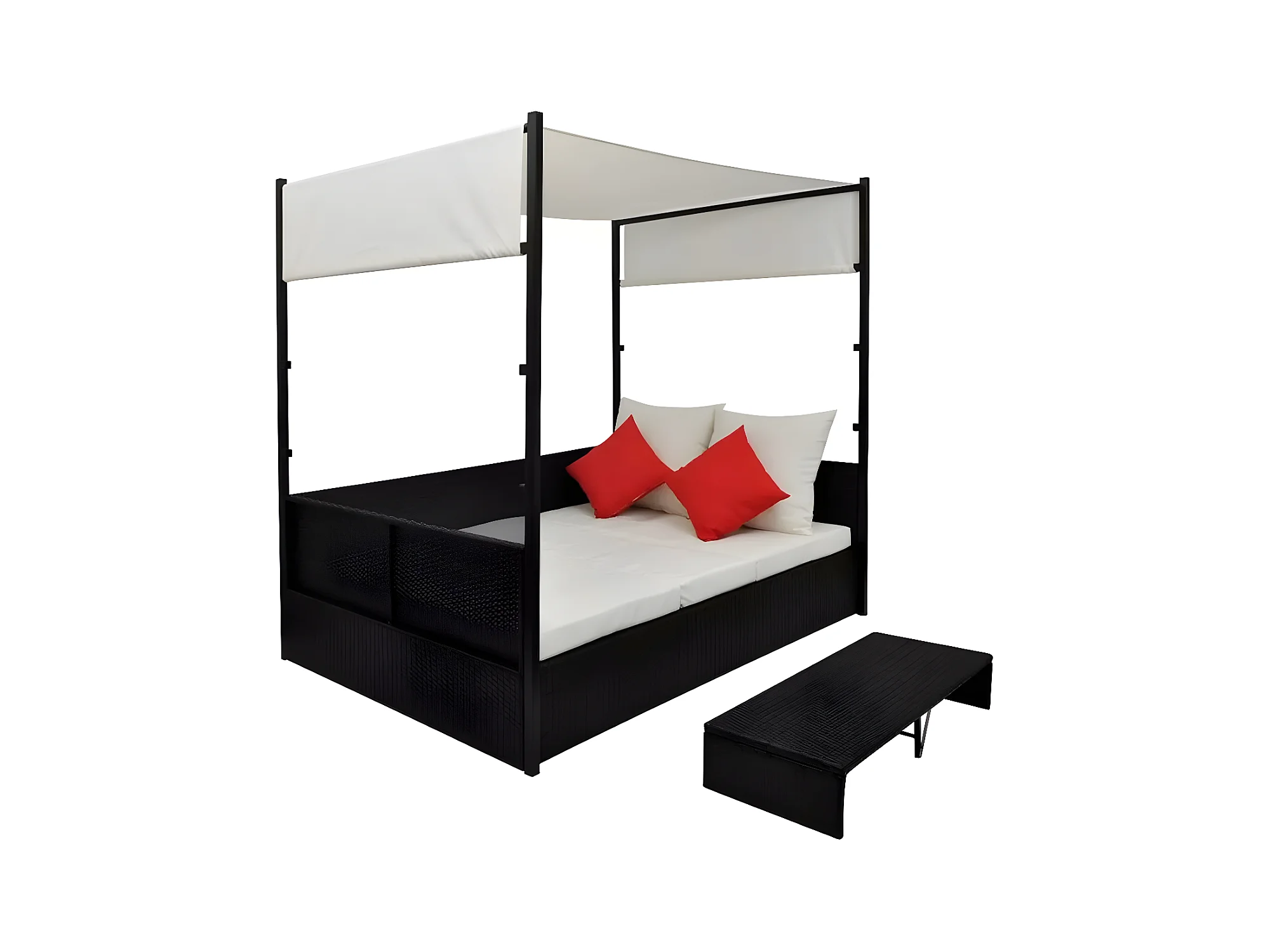 Lit de jardin à baldaquin résine tressée noire Uvo