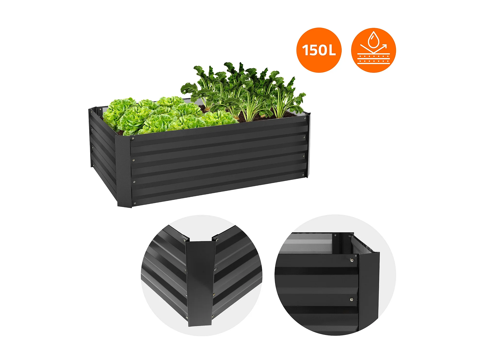 Lit de jardin surélevé bac à plantes/fleurs/légumes jardinière métal 90x30 cm
