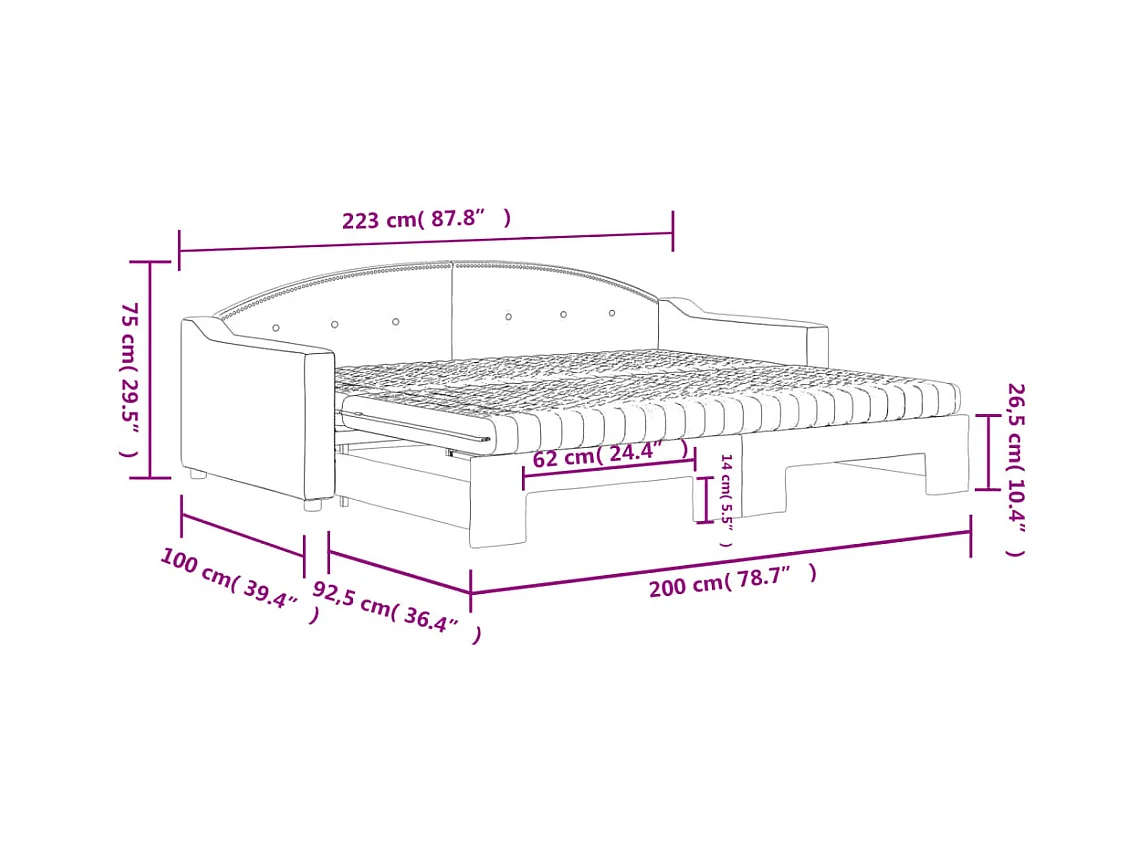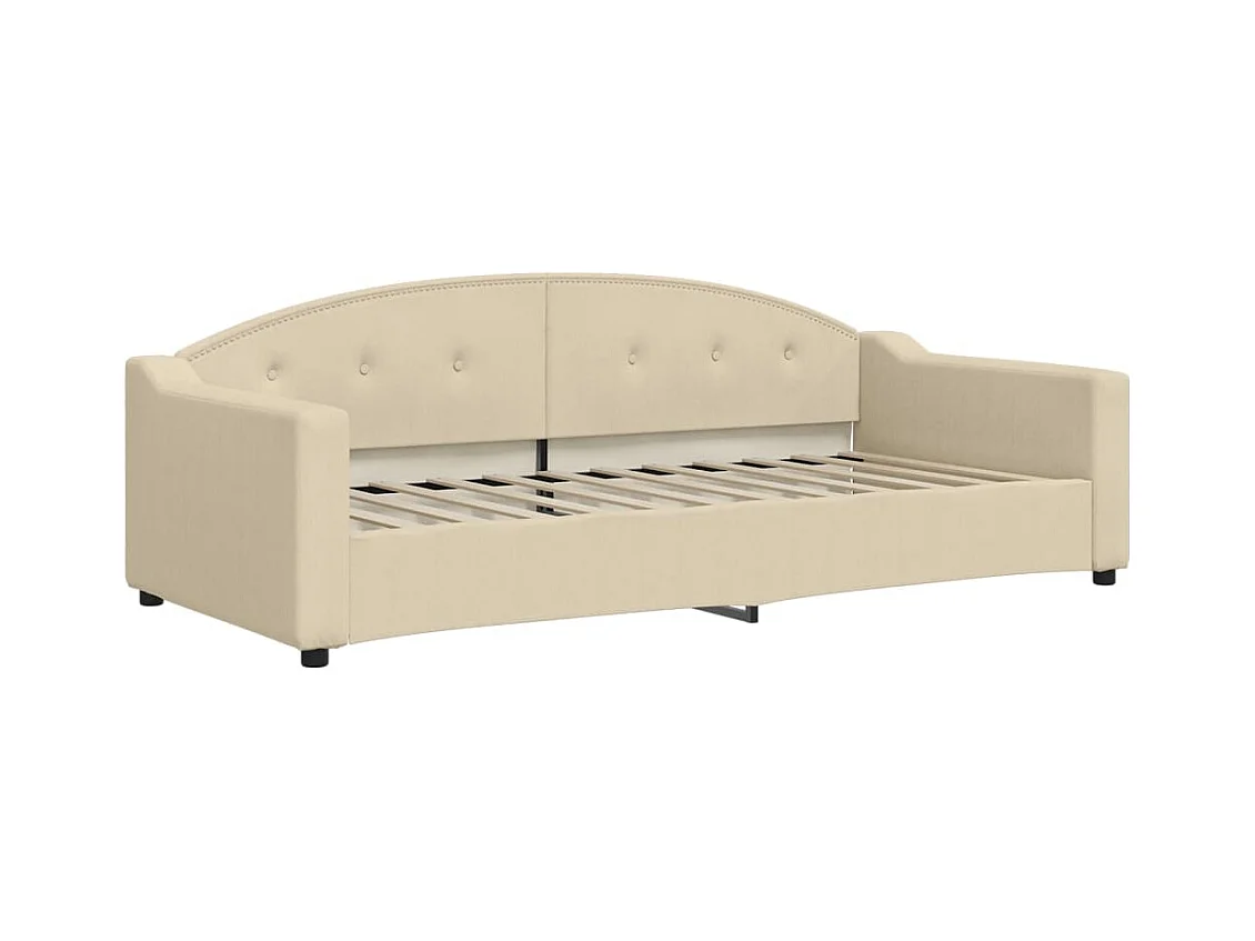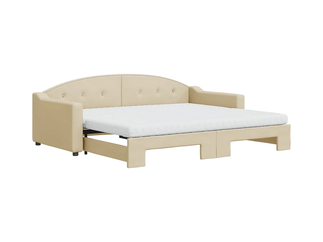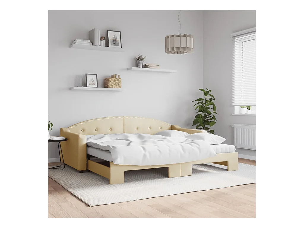 Lit de jour avec gigogne et matelas crème 90x200 cm tissu