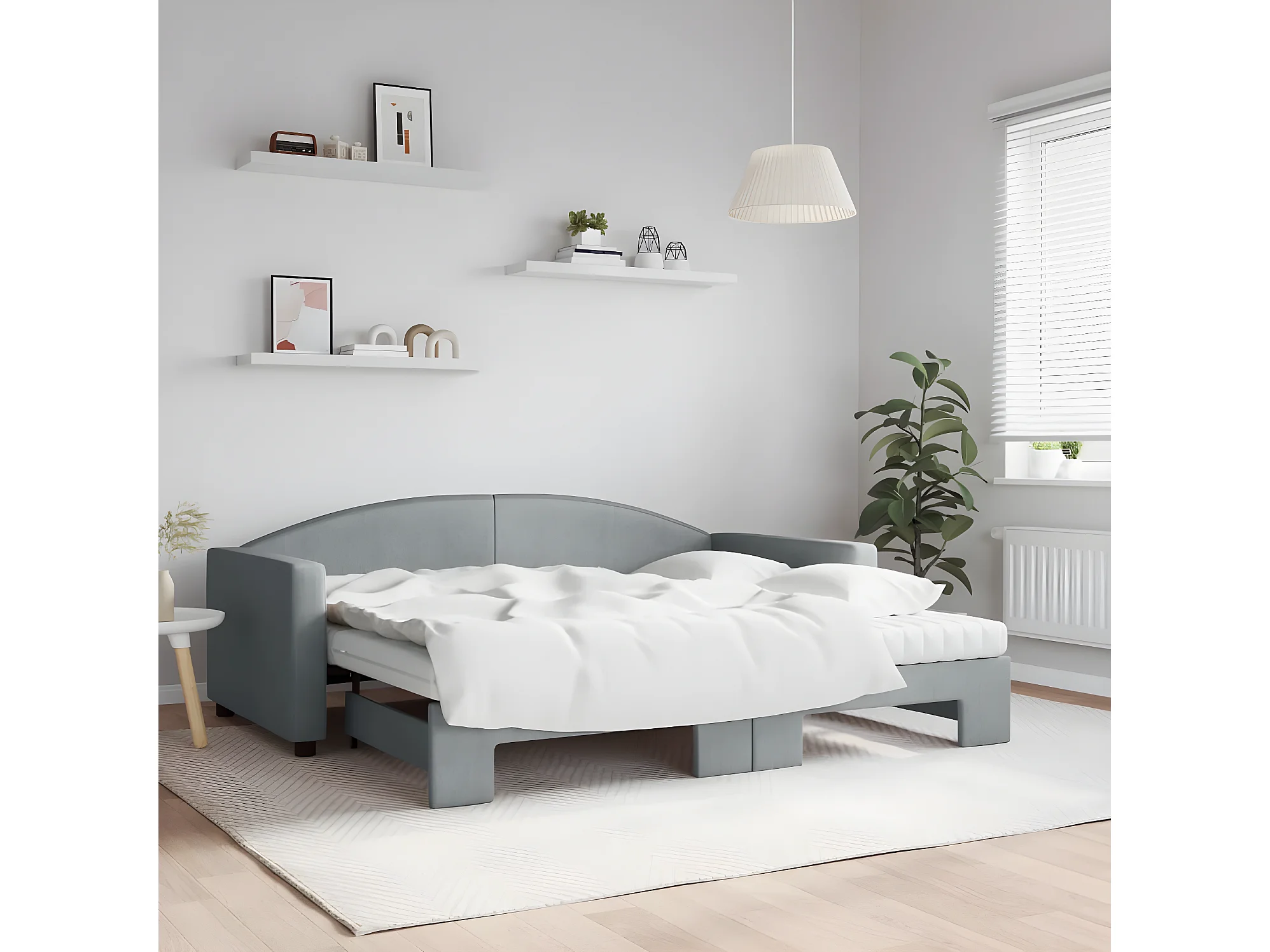 Lit de jour avec gigogne et matelas gris clair 90x190 cm tissu